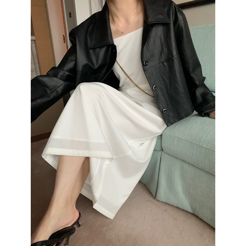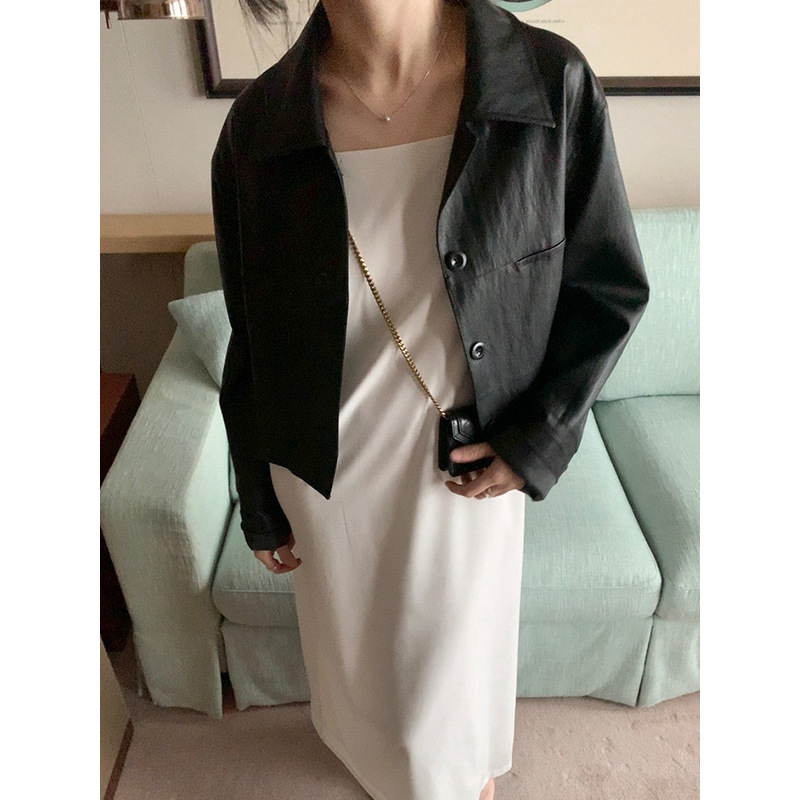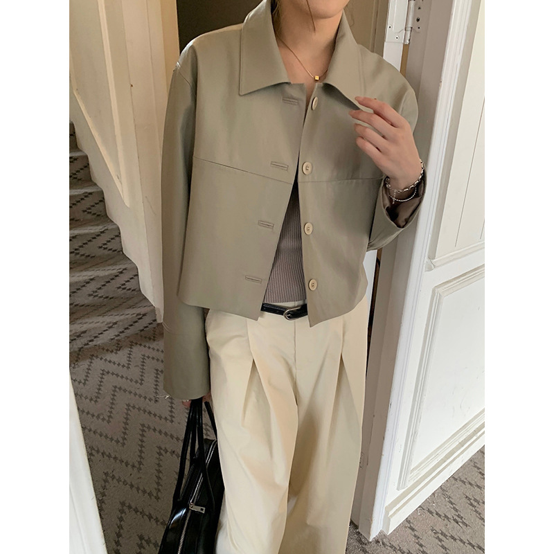 | nameOriginal | Yuanpai bluepops2024 spring new split line design leather coat retro lapel jacket A4095 |