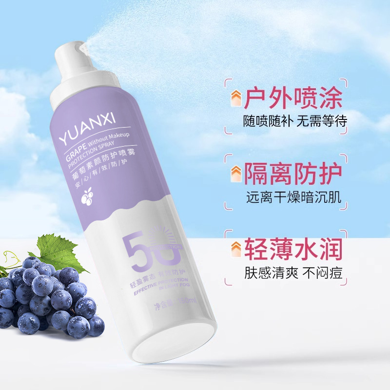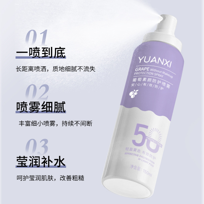 | nameOriginal | YUANXI Yuanxi Grape Protective Spray Anti-ultraviolet Face Protection Anti-black Waterproof Anti-sweat Portable Whole Body |