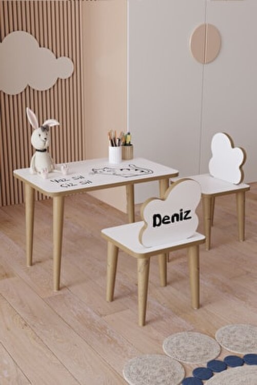 1 Pcs Table 2 Chairs will be sent. How to Make a Name Registration? You must transmit your order number and your child’s name starting with 18- 19 from Ask Seller Question Section within 10 minutes immediately after placing the order. Sample “186558976 Sea” If you do not report the name within 10 minutes, we will register your order anonymously and your order will be sent to production later if you send the name, it will be considered invalid and will be sent anonymously. For him please send your name immediately when you place your order? You can erase writing boots on the table with the Wooden Pen Table Top table Width: 45×60 (-+5) cm Table Height: 42 cm Chair Seating Height: 27 cm Table and Chair MDF Grade 1 Chipboard Material is manufactured by CNC cutting and the edges are ovalized. Corners and spikes are not left nowhere so that situations such as impact injuries do not arise. The legs are made of Hornbeam Wood and are natural wood. Dye varnish etc. substances harmful to health have not been used. It is simple to install. It is enough to attach the wooden legs to the apparatus installed on the tables by turning them manually. —TOY AND TOOL REQUIREMENTS IN IMAGES HAVE BEEN USED AS ACCESSORIES, NOT INCLUDED IN THE PRODUCTS —–