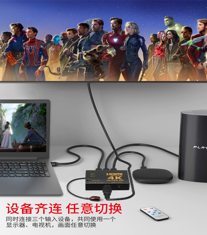 | nameOriginal | Yue Zhi Xin HDMI splitter 3/2 in 1 out switcher 2 three/2 in 1 out 4k high-definition remote control split screen TV box computer set-top box shared TV free power supply |