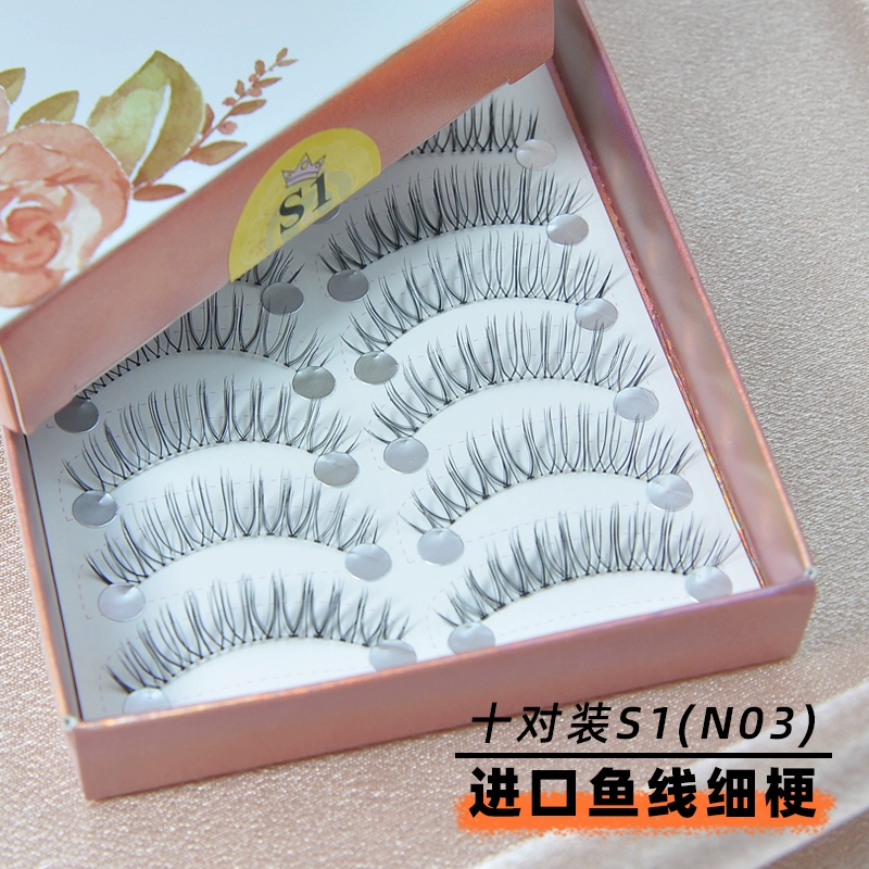 Yue’er Princess False Eyelashes Women’s Whole N07 Sharpened Thin Stems Natural No-Makeup Bridal Makeup Transparent Stems Ten Pairs Pack S3