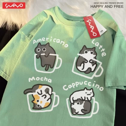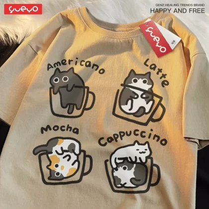 Yueyou Trend Original Cat Three-Flower Short Sleeve T-Shirt