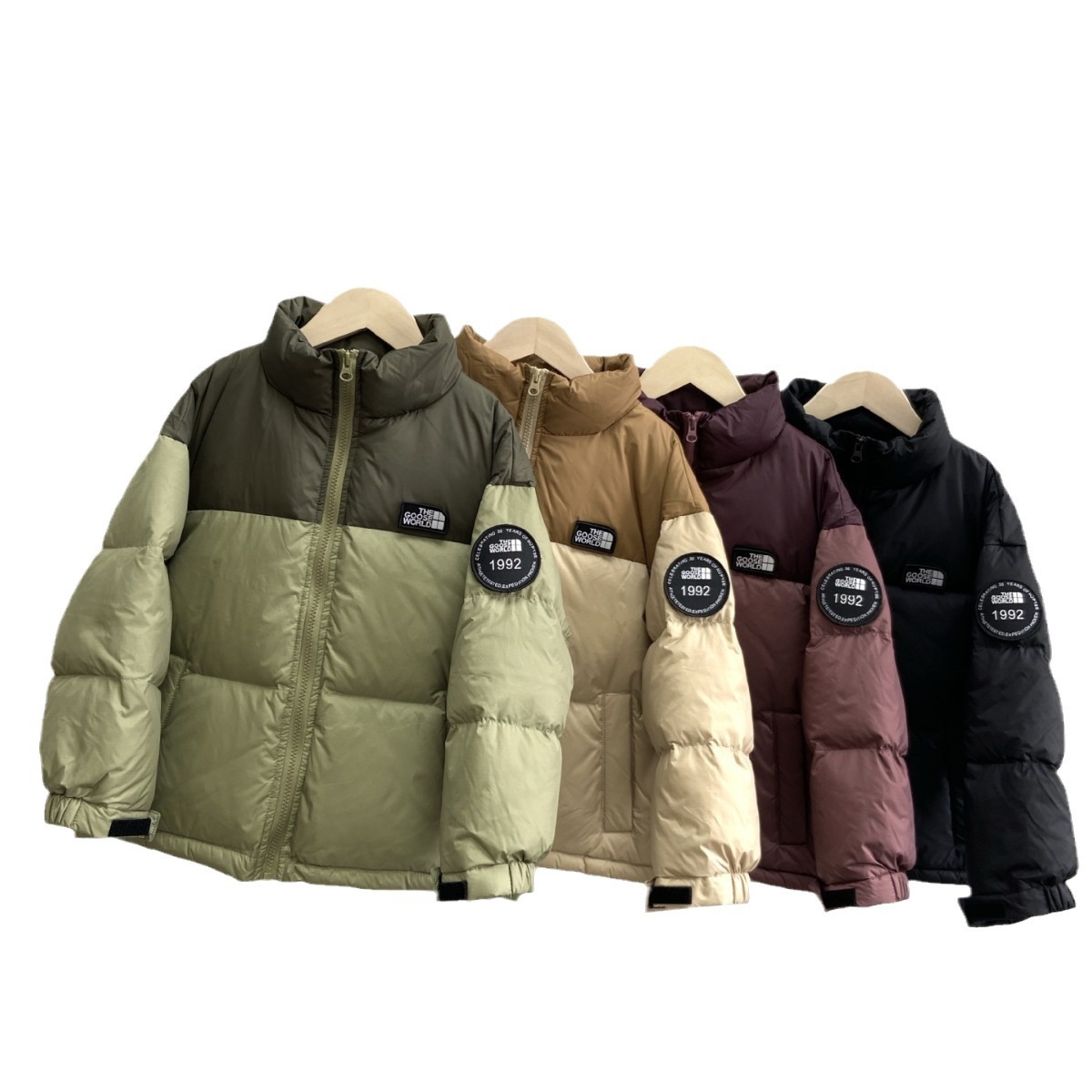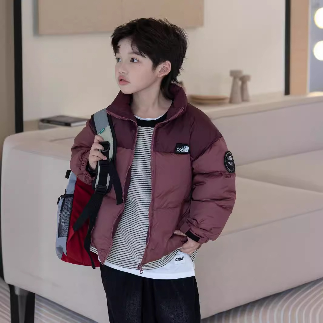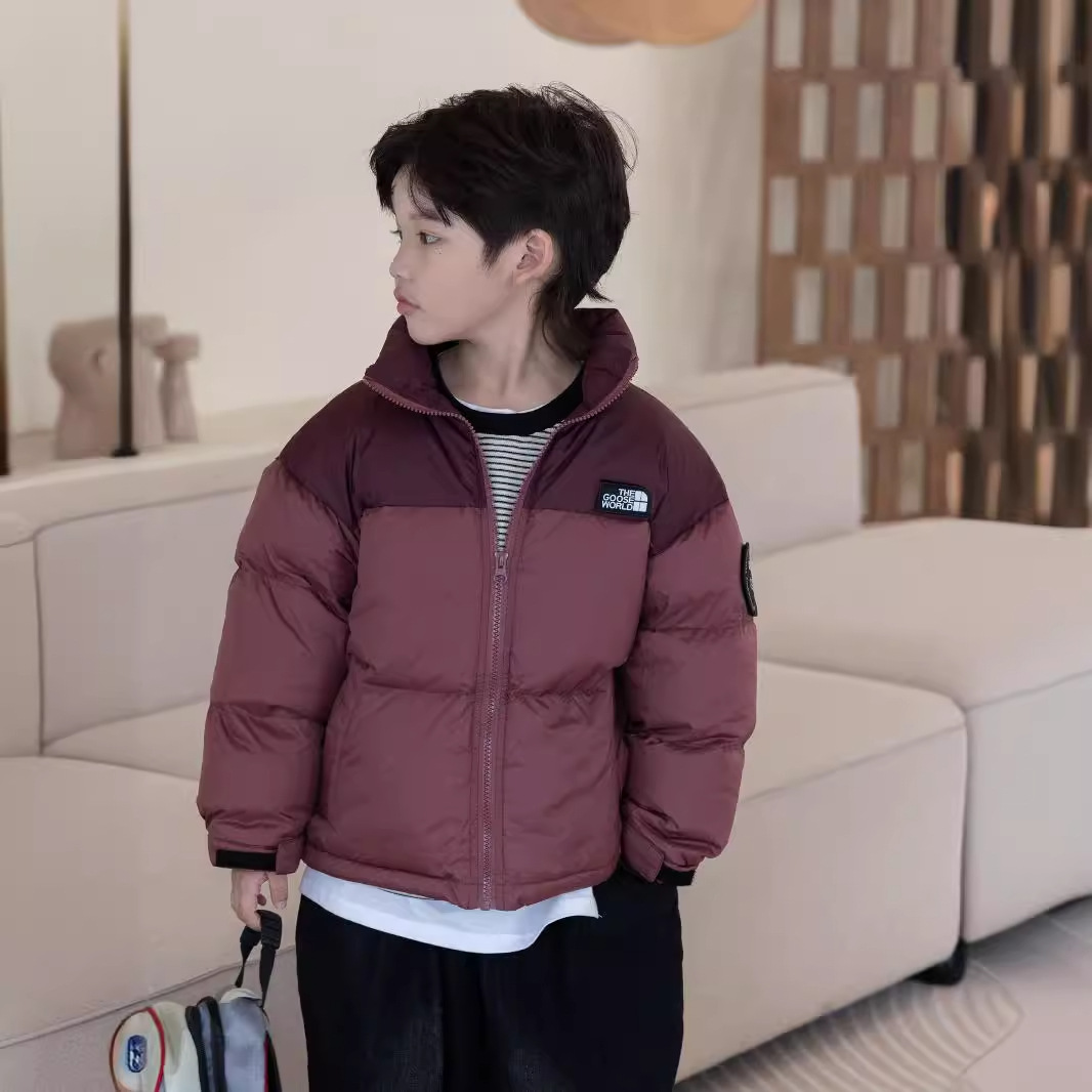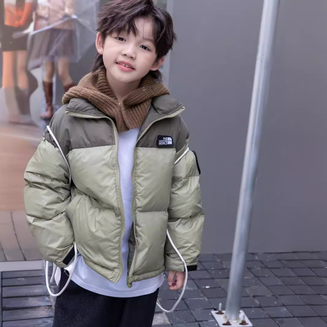 | nameOriginal | Yuguang 23 in stock new color matching letters girls boys medium and small children short children's white duck down jacket outside |