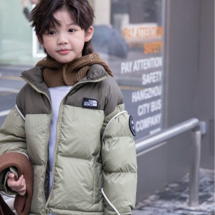 | nameOriginal | Yuguang 23 in stock new color matching letters girls boys medium and small children short children's white duck down jacket outside |