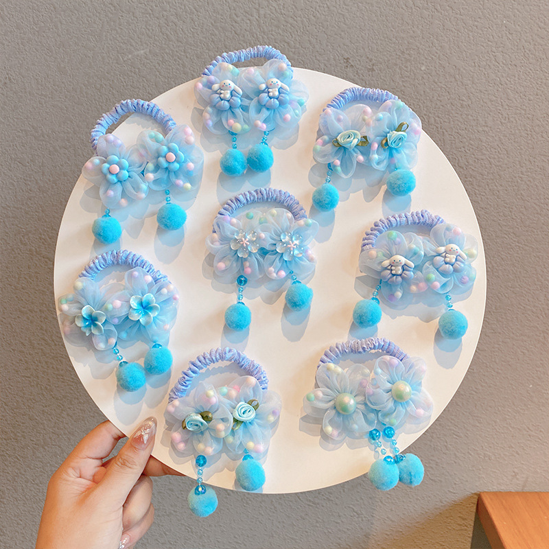 | nameOriginal | Yugui dog flower small intestine hair ring children do not hurt hair rope baby ball head high bullet rope fur ball pendant |