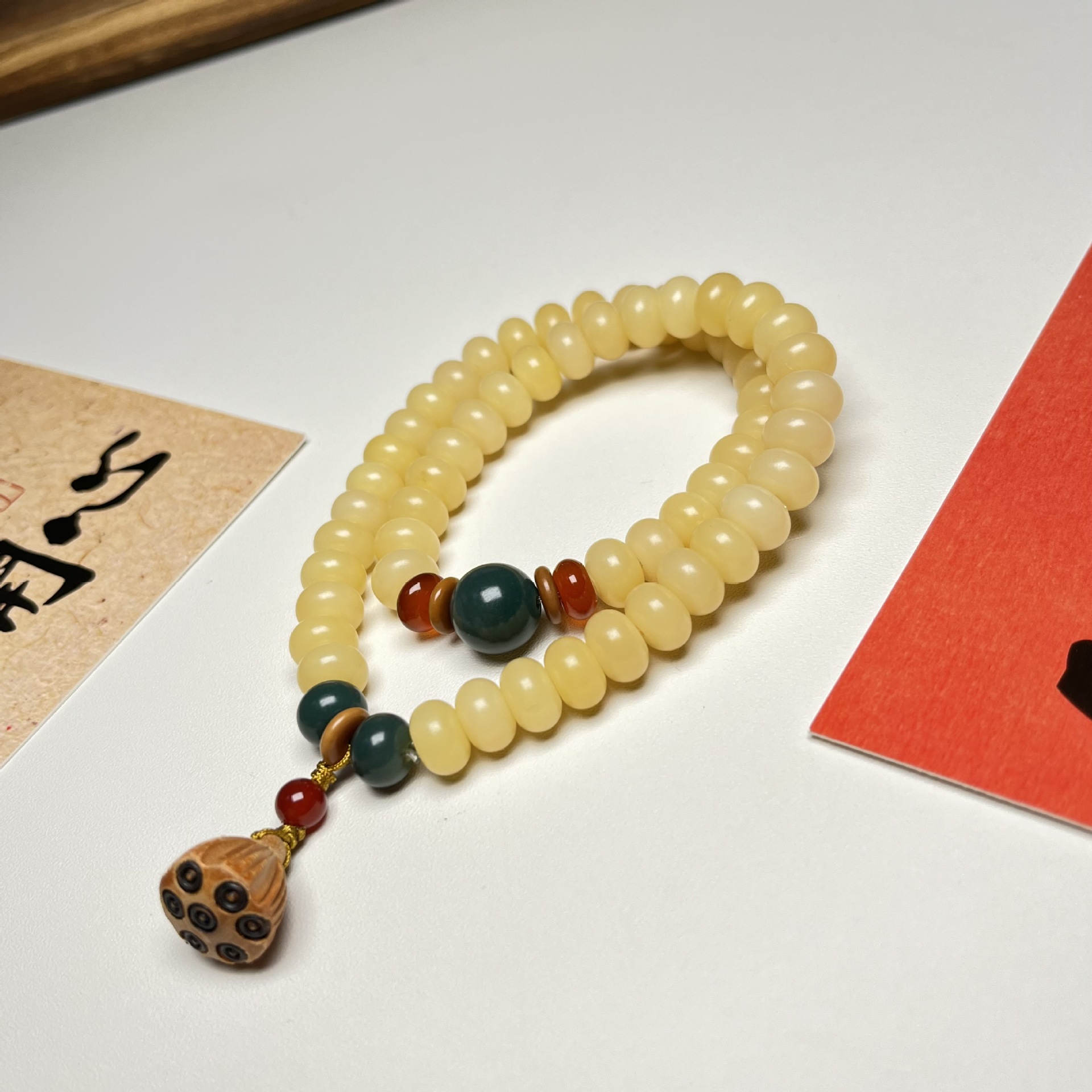 | nameOriginal | Yuhua Bodhi Root Double-Circle Bracelet Lotus Canopy Accessories Cream Yellow Abacus Bead Bracelet Collection Cultural Play Good Gifts |