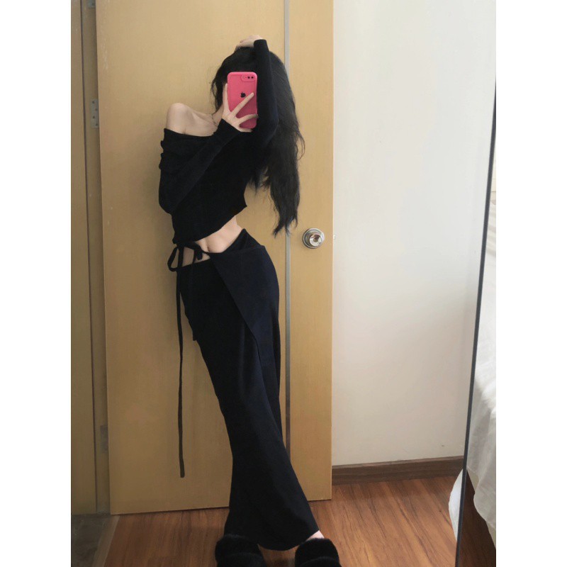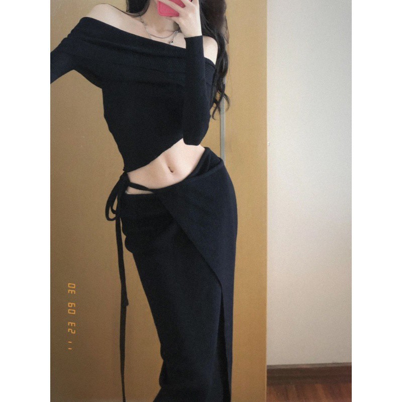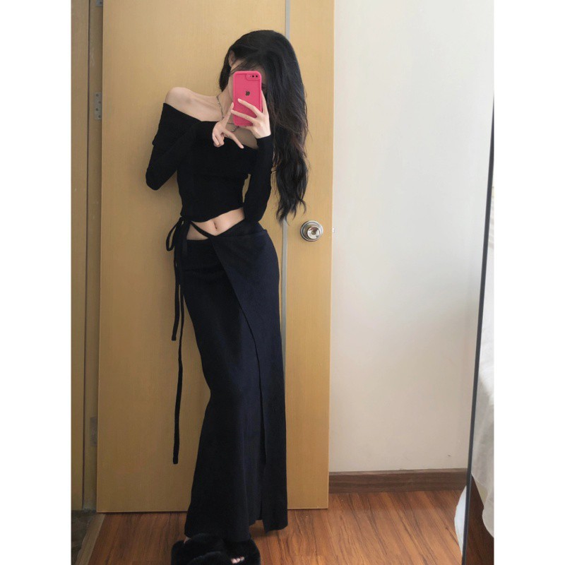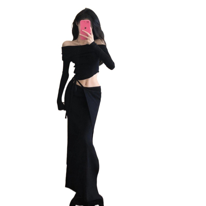 | nameOriginal | Yujie Light Mature Wind suit Women's Spring New Spice Girl Shoulder Long Sleeve Top Hip Dress Black Two-piece Set |