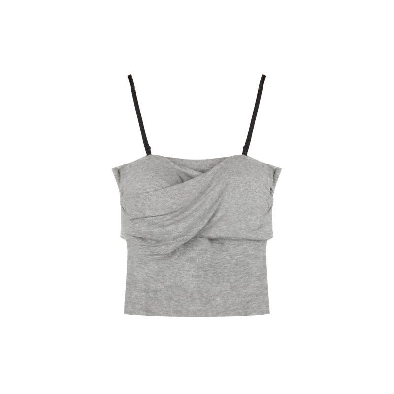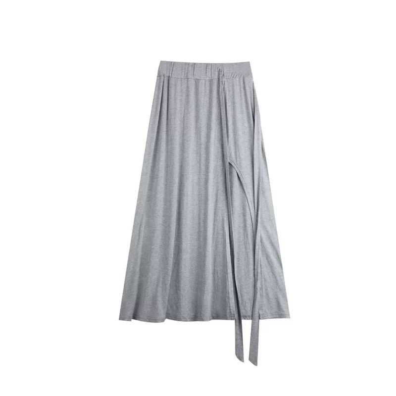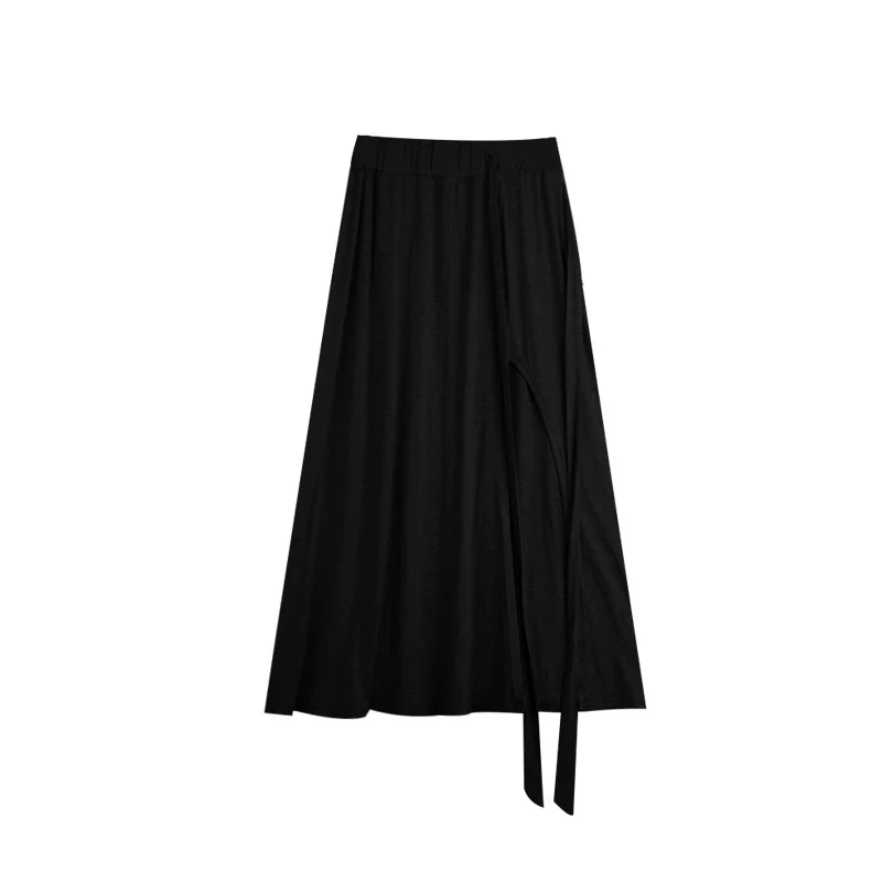 Yujie pleated early spring black slit skirt with suspenders
