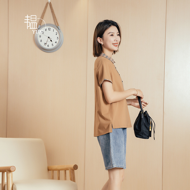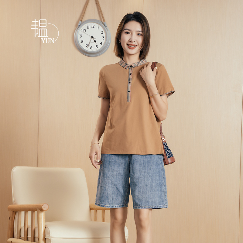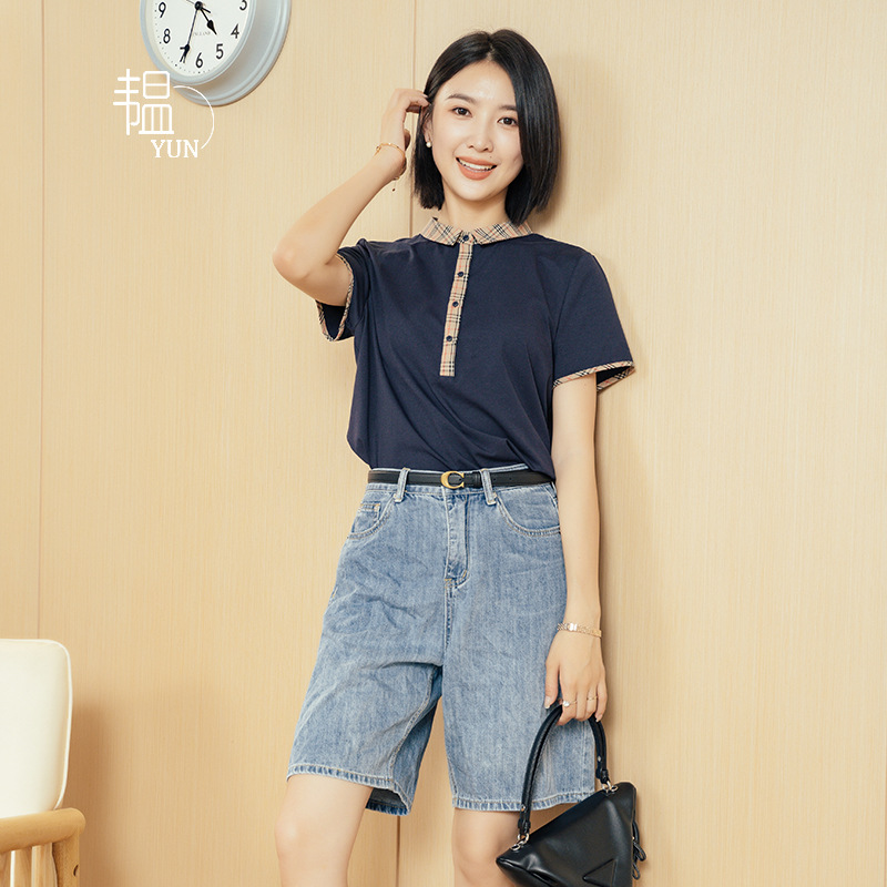 YUN Yun 2024 New Summer Women's Striped Polo Collar Short-sleeved Casual Top Women's high quality Loose T-shirt
