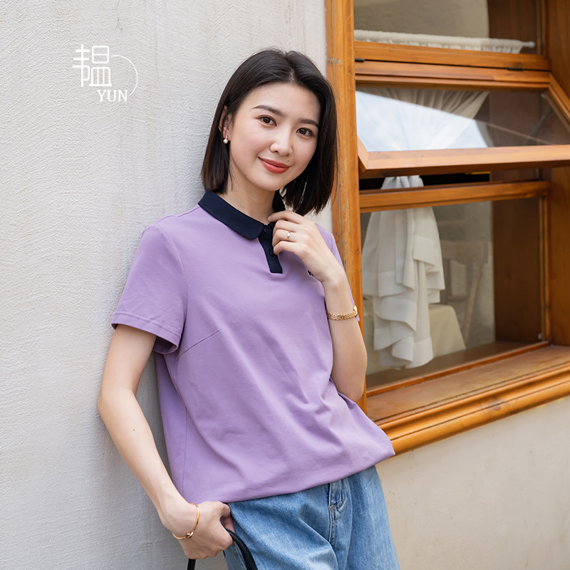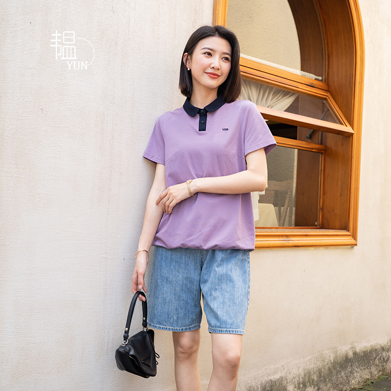 YUN Yun 2024 Summer New Polo Collar Shirt Women's Commuter Knitted Korean Thin Loose Casual T-Shirt Top
