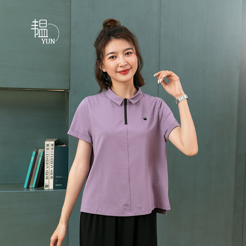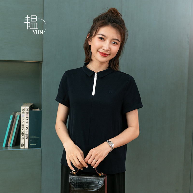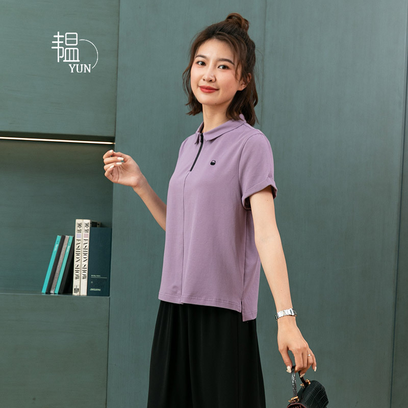 | nameOriginal | YUN Yun 2024 Summer New Women's Simple POLO Collar Placket Zipper Pullover Solid Color Flanging Short Sleeve T-Shirt |