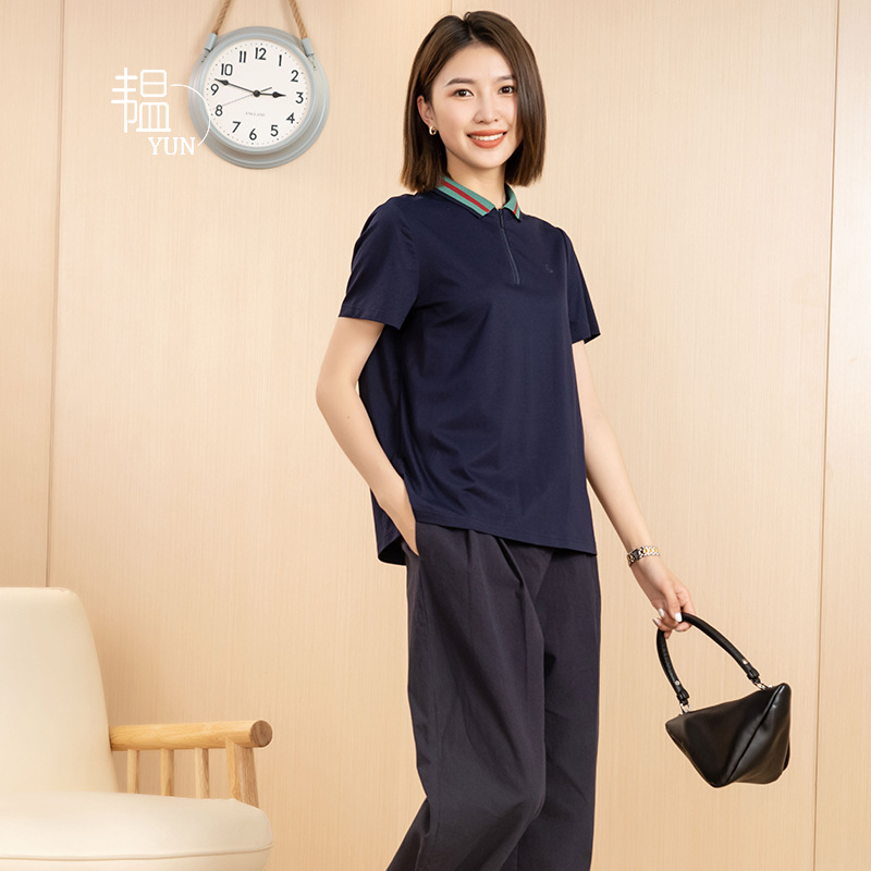 | nameOriginal | YUN Yun Summer Women's New Contrast Color Stripe Loose Edge High-end Thin Short-sleeved Women's Top Polo Shirt |