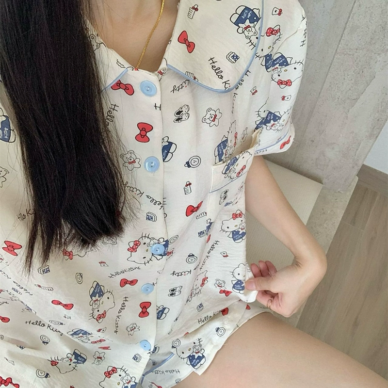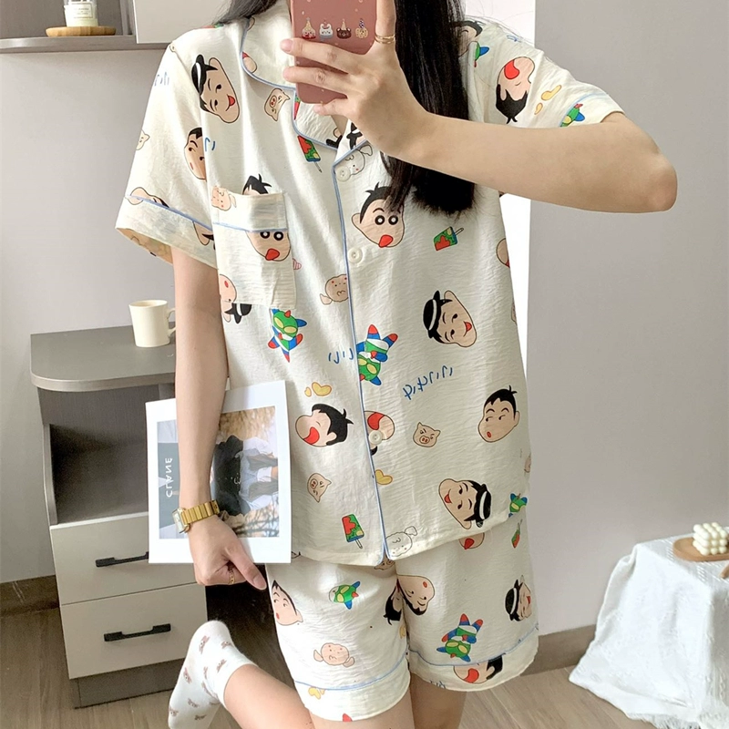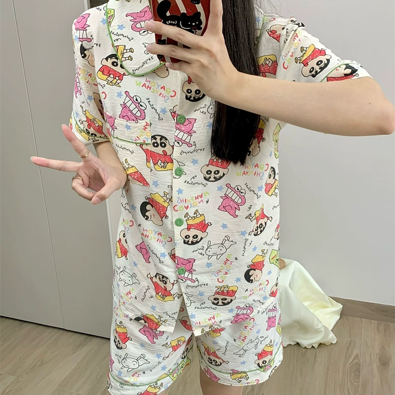Yunduo women's short-sleeved trousers student two-piece cartoon set