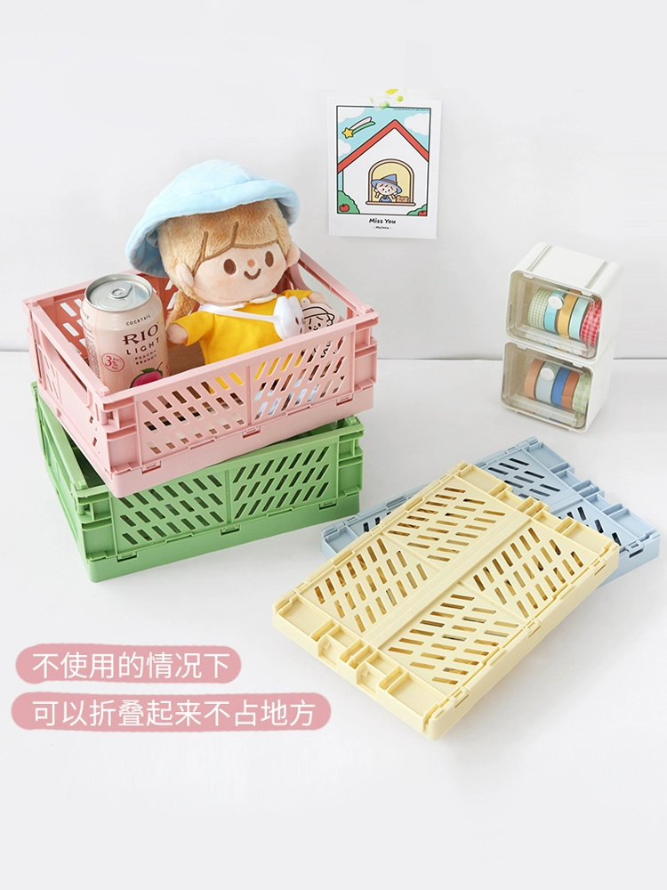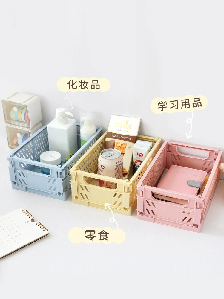 Yunmu grocery can fold the macaron stationery basket office desktop debris cosmetics dormitory storage box storage basket