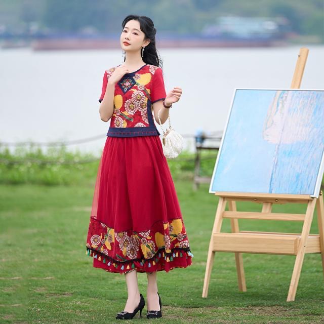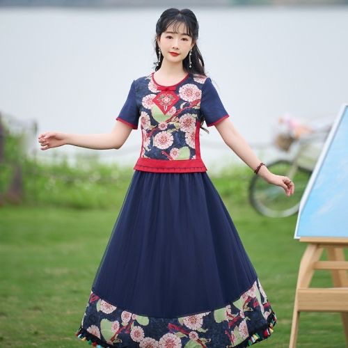Yunnan clothing factory wholesale Women's ethnic clothing cotton and linen ethnic style suit two-piece square dance clothing