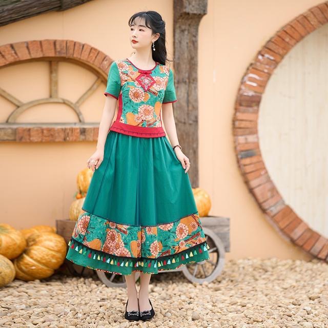 Yunnan clothing factory wholesale Women’s ethnic clothing cotton and linen ethnic style suit two-piece square dance clothing