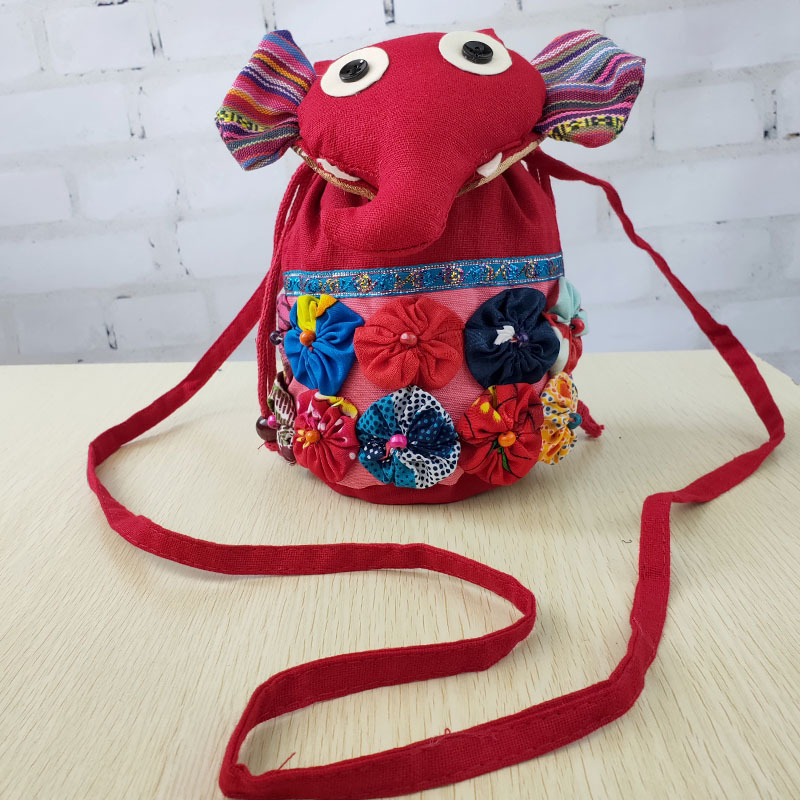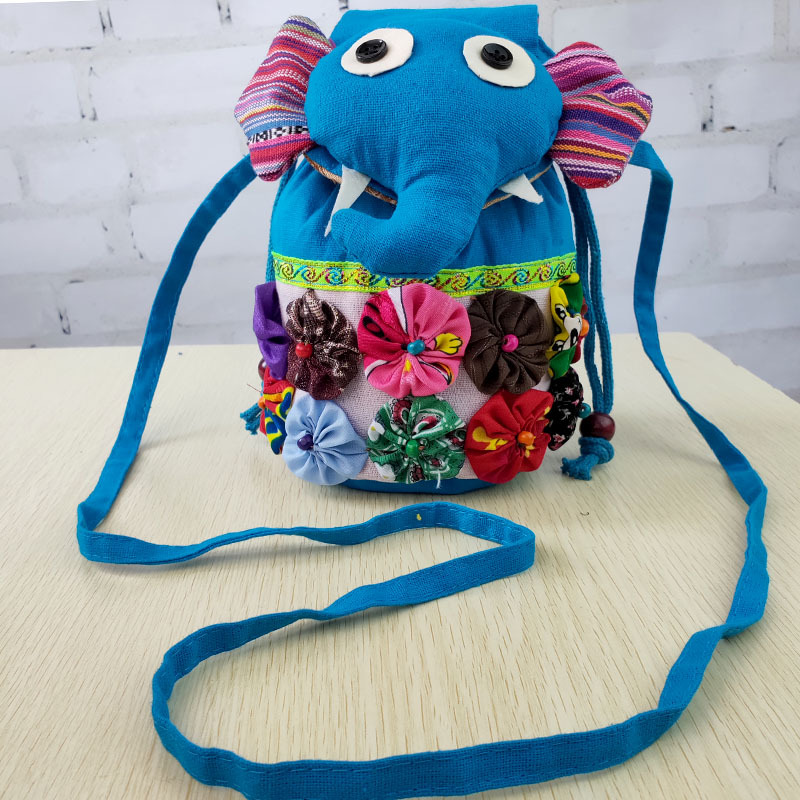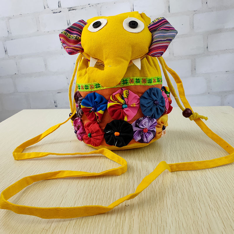| nameOriginal | Yunnan creative cotton and linen cloth bag handmade beaded drawstring messenger bag flower children cartoon bag small elephant bucket bag wholesale |