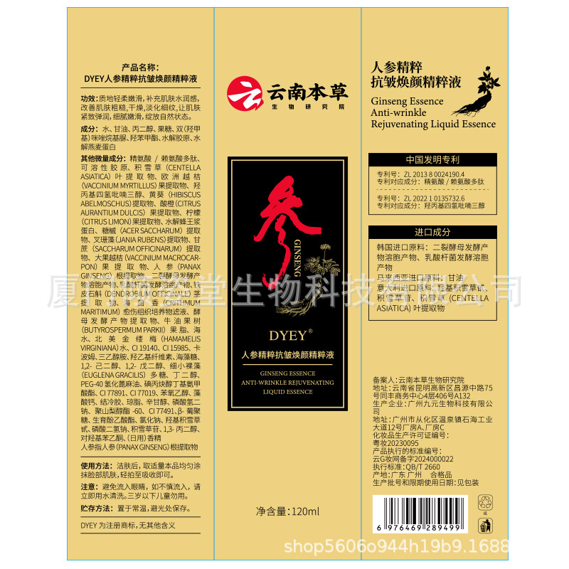 | nameOriginal | Yunnan herbal DYEY essence liquid on behalf of hair fading fine lines DYEY ginseng essence anti-wrinkle brightening essence liquid |