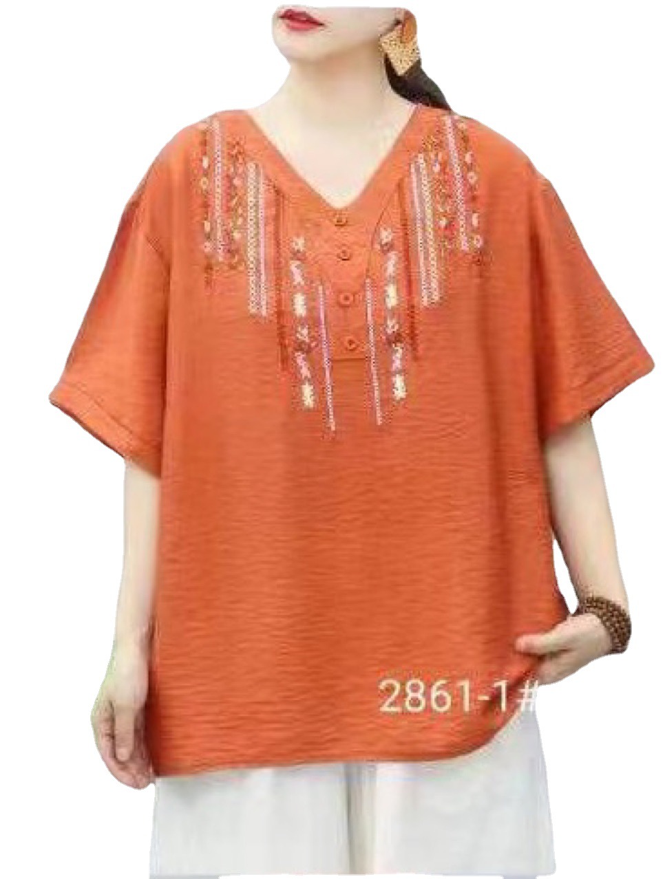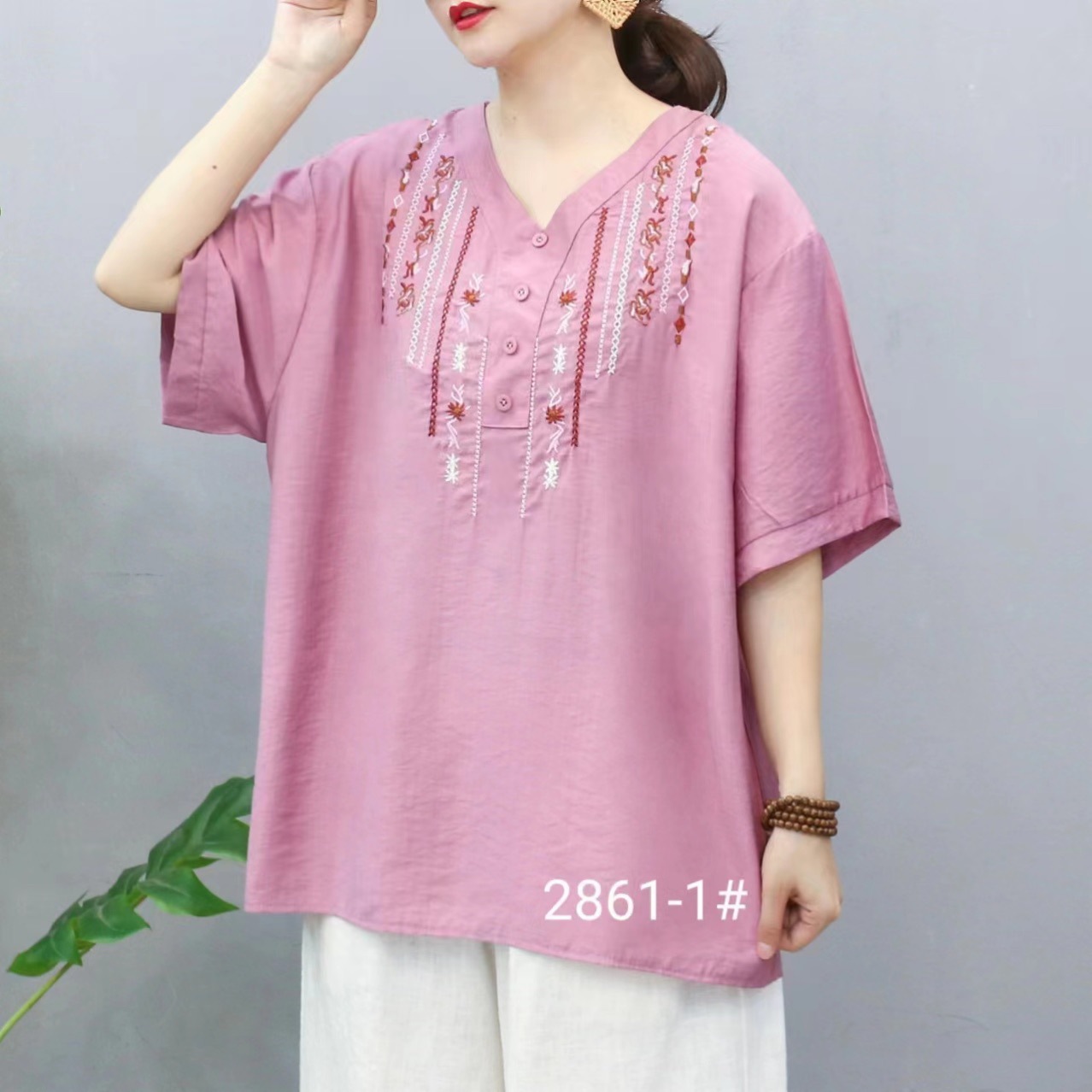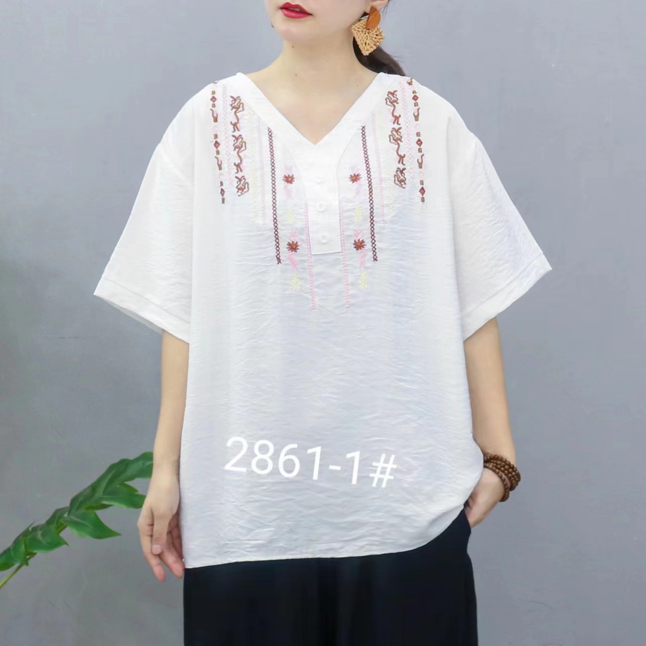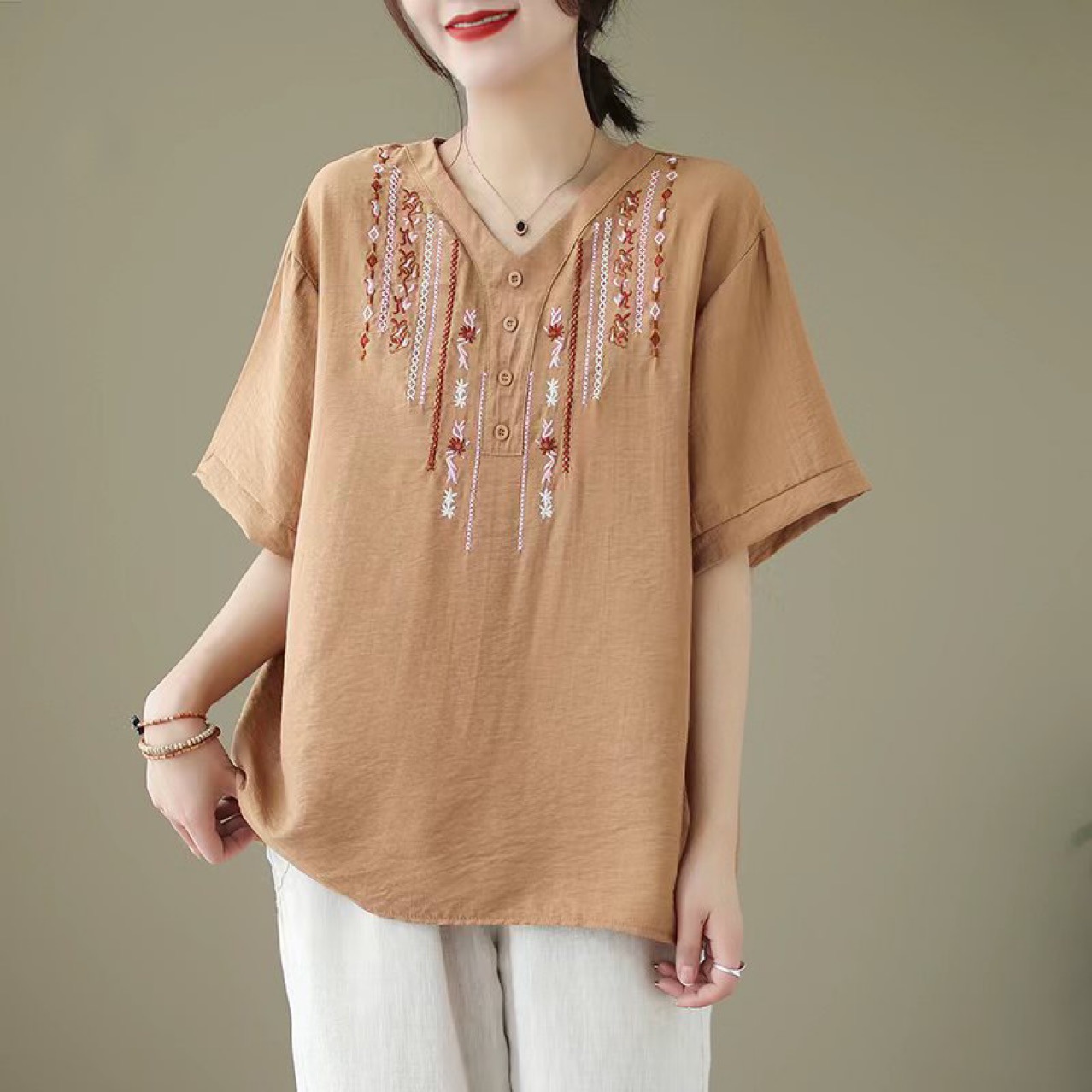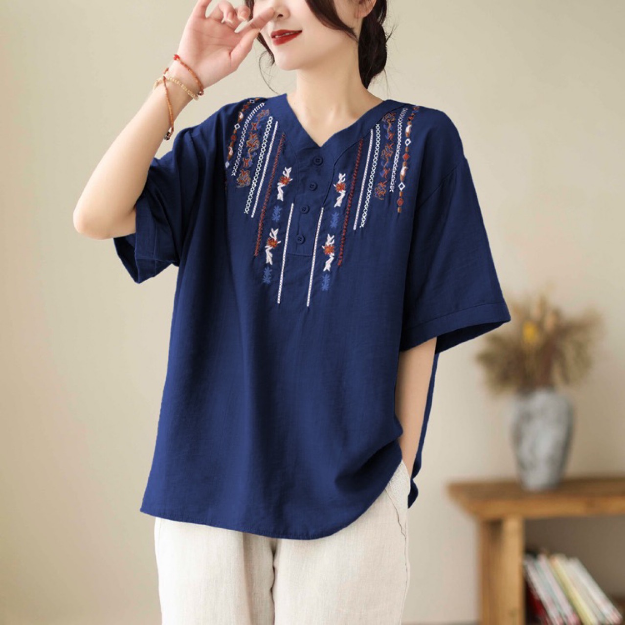| nameOriginal | Yunnan Travel Comfortable Ethnic Casual Embroidered Loose Top Retro Button V-Neck Short Sleeve Women's Clothing Wholesale |