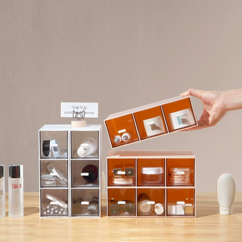 Yusheng desktop storage box can be stacked with small drawer combination compartment cosmetics lipstick eyebrow pencil holder organizer box dustproof