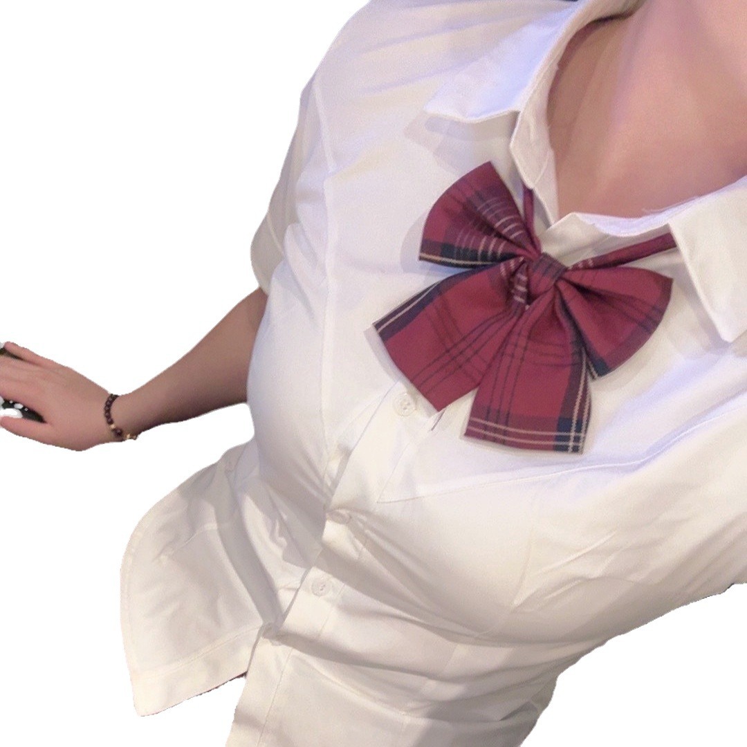 | nameOriginal | Yuying Original JK Shirt Tight Waist Shirt Stretch Top Pure Spice Girl Slim Look Short Sleeve Summer V-Neck Shirt |