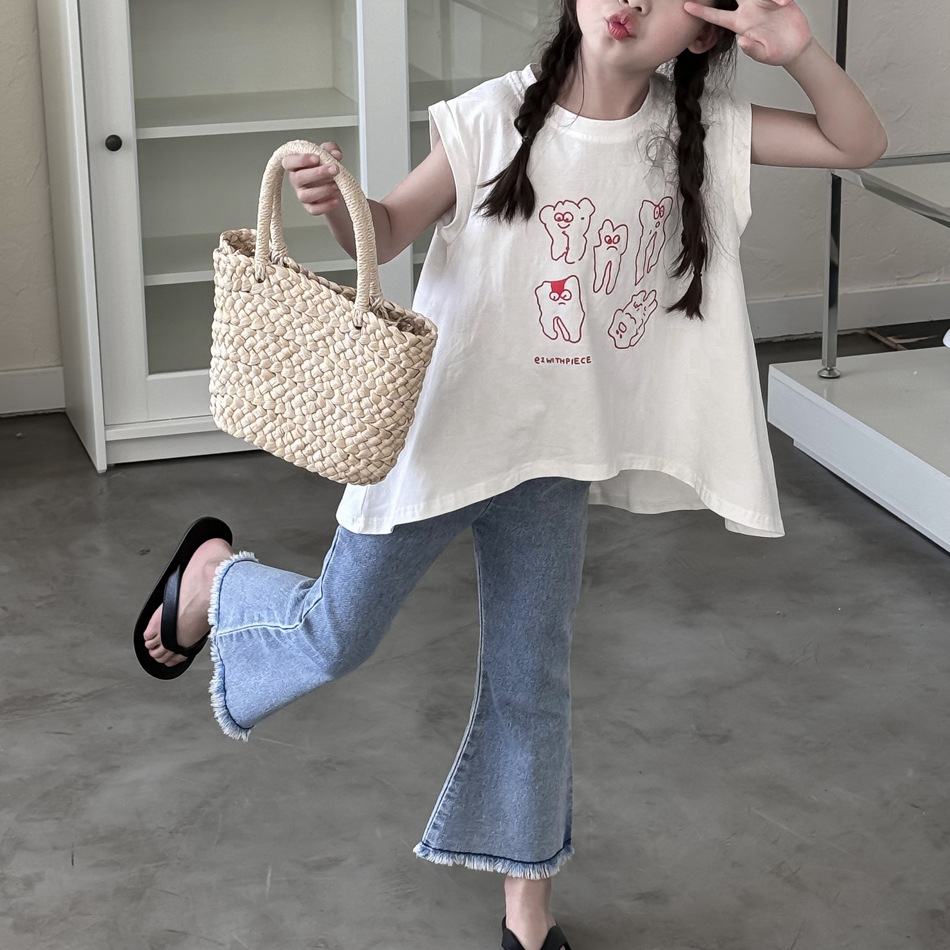 Yuyu Princess Girls’ Rouge Pants Ankle-length Pants Women’s Baby Summer New Korean-style Flared Pants Jeans