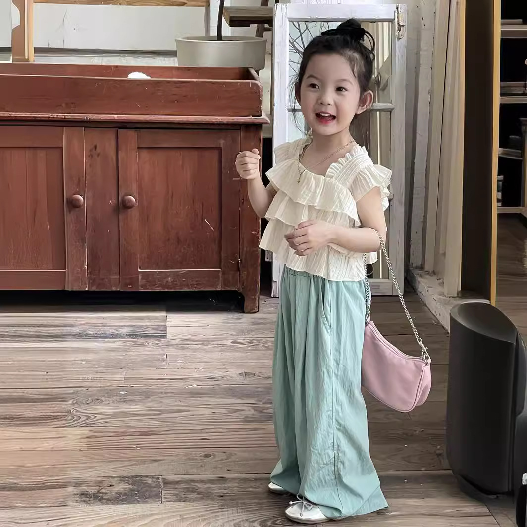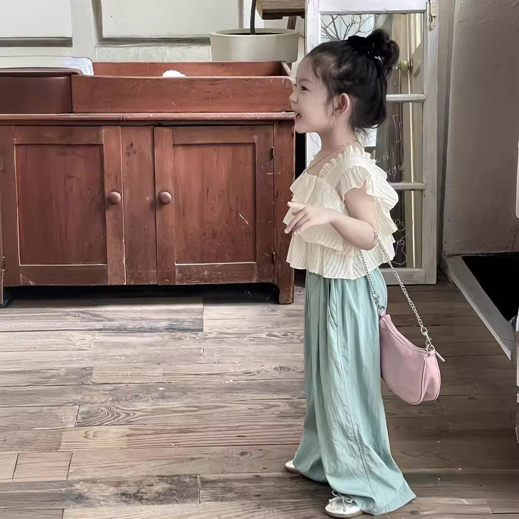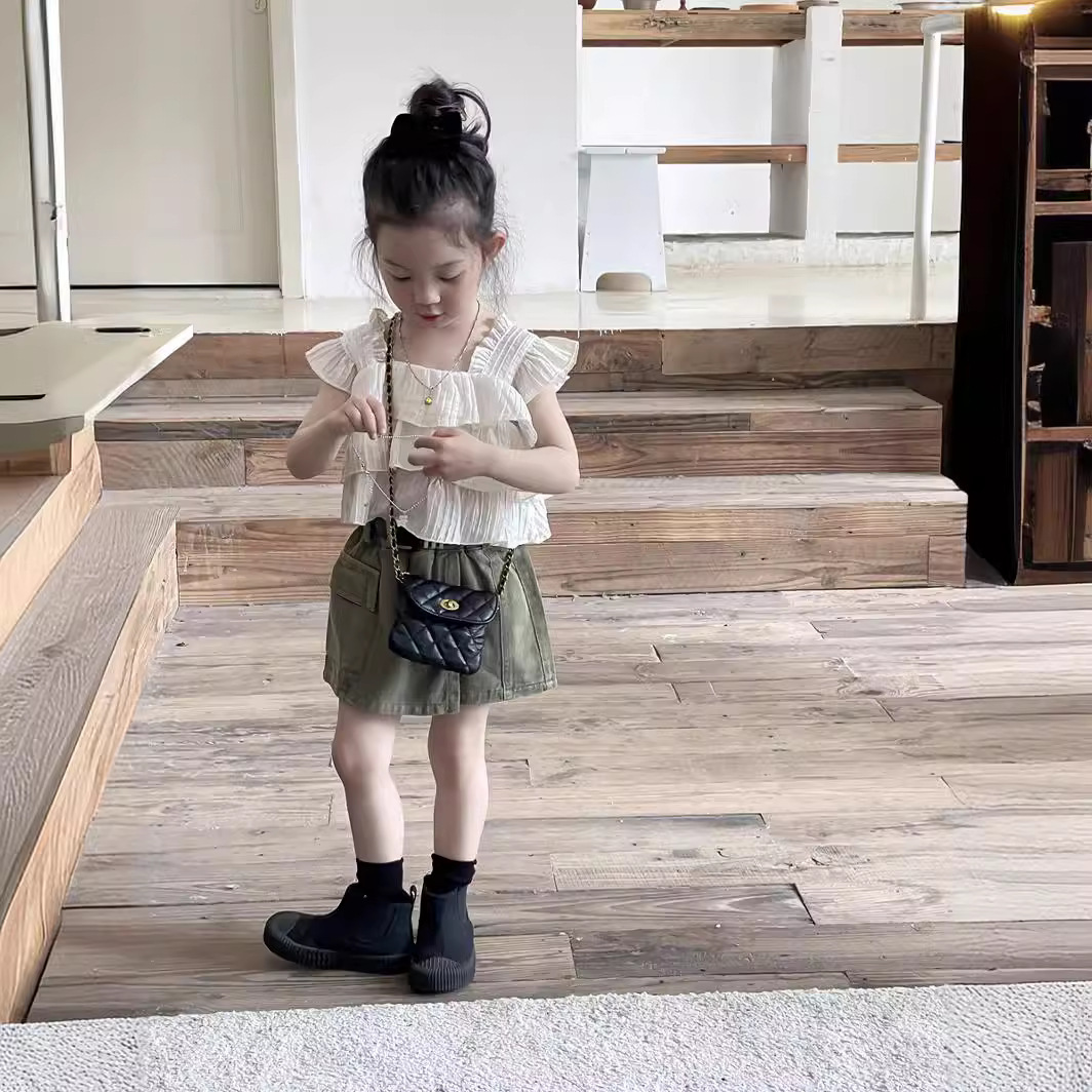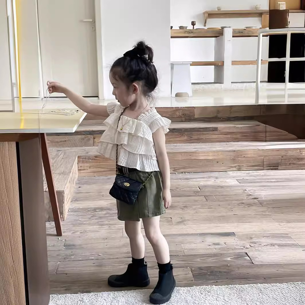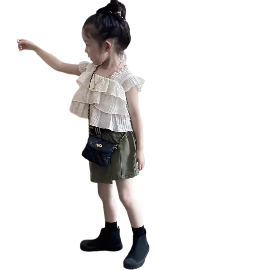 Yuyu Princess Girl's Summer Short Flying Sleeve Design Sense Doll Shirt Baby Girl's Ruffled Chiffon Top