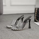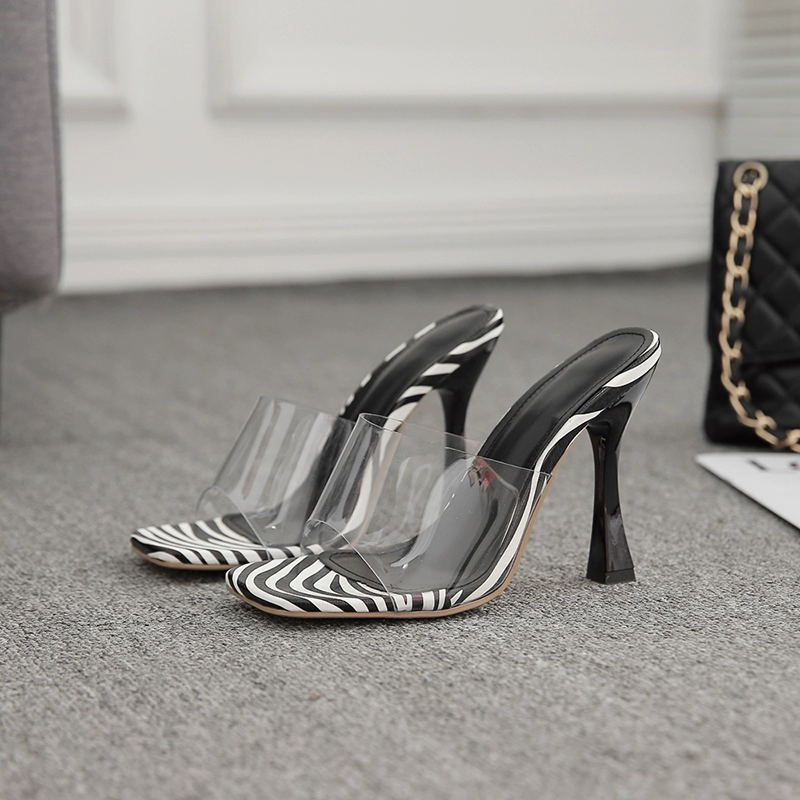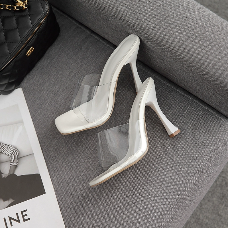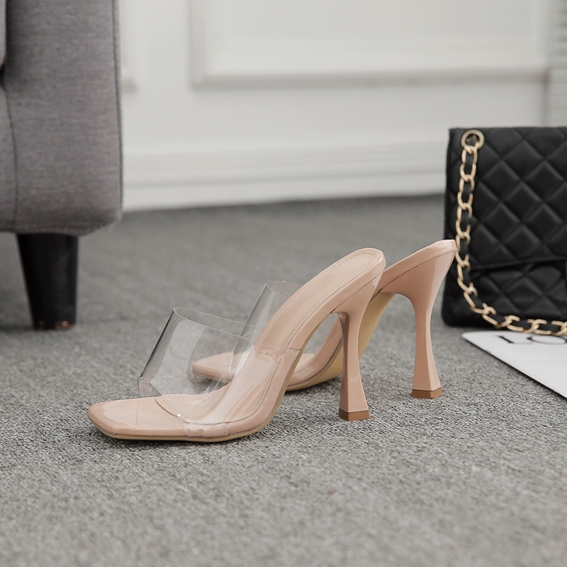 Yuzui European and American large -size transparent women summer high -heeled sand slippers