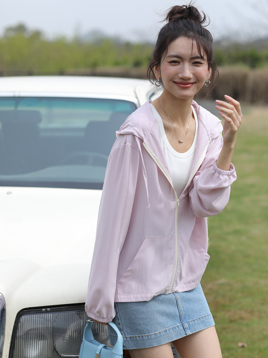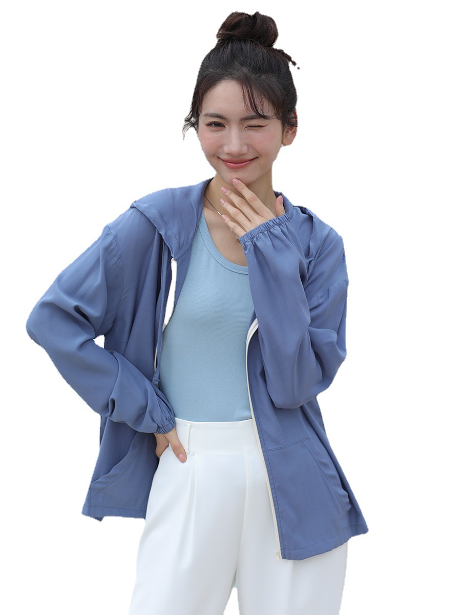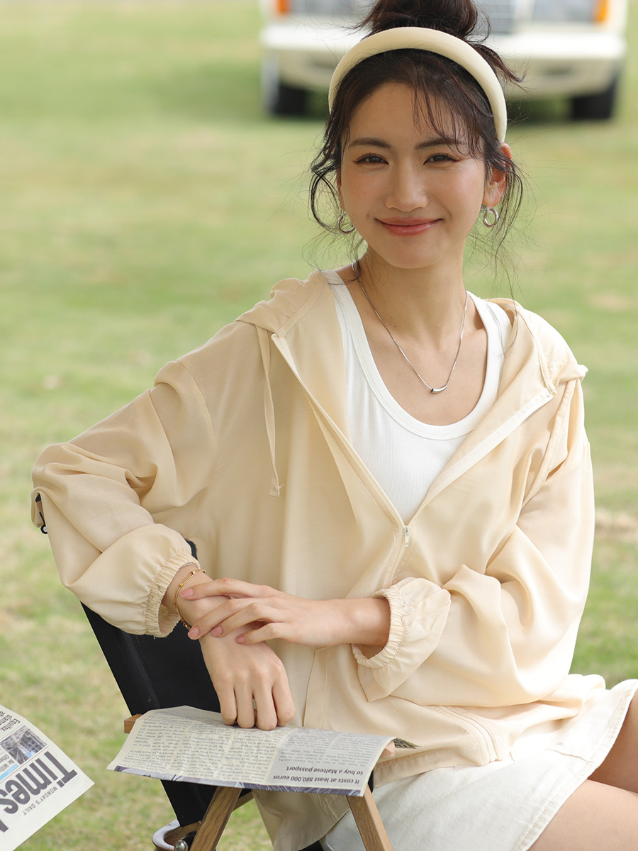 YX Summer Thin Outer Sun Protection Casual Hooded Cardigan Jacket Korean Loose Long Sleeve Air-conditioning Shirt Top