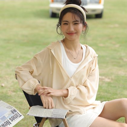 YX Summer Thin Outer Sun Protection Casual Hooded Cardigan Jacket Korean Loose Long Sleeve Air-conditioning Shirt Top
