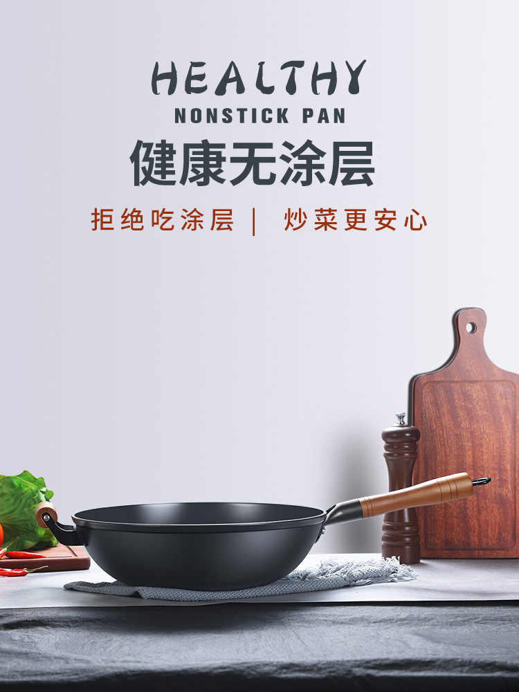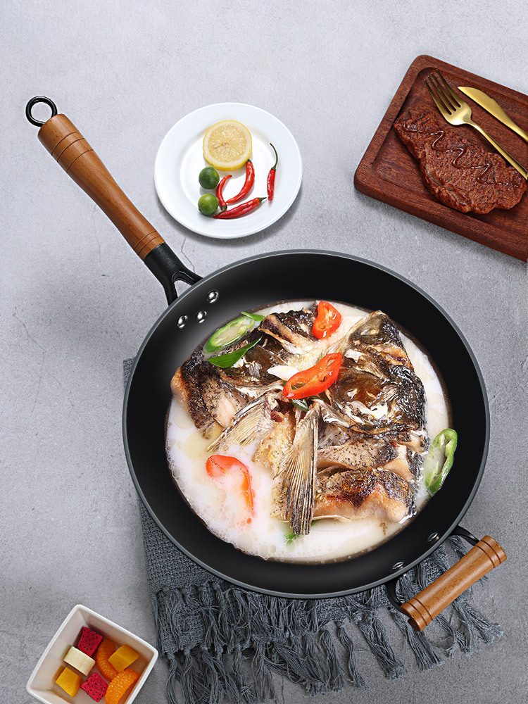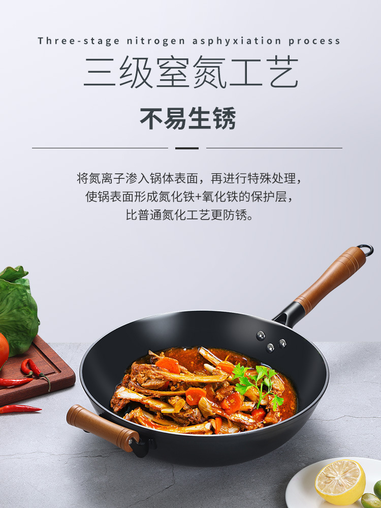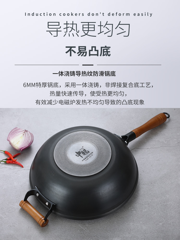 Z655 induction cooker iron wok nitrided cast iron cooking uncoated pig iron household gas stove Luchuan pan