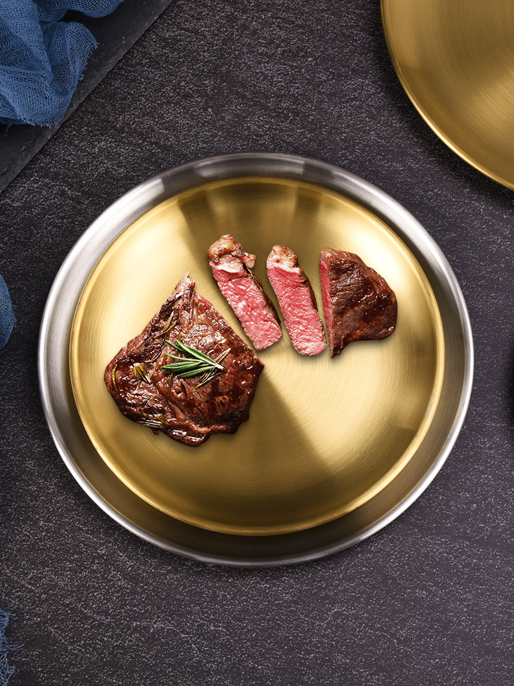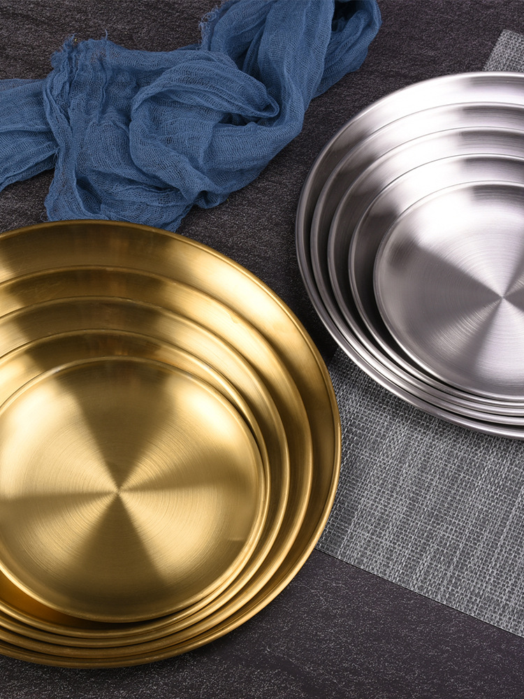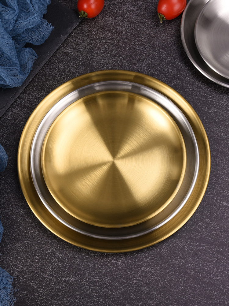 | nameOriginal | Z655 Korean tableware stainless steel thickened golden disc restaurant tray bone dish cold dish fruit salad plate |