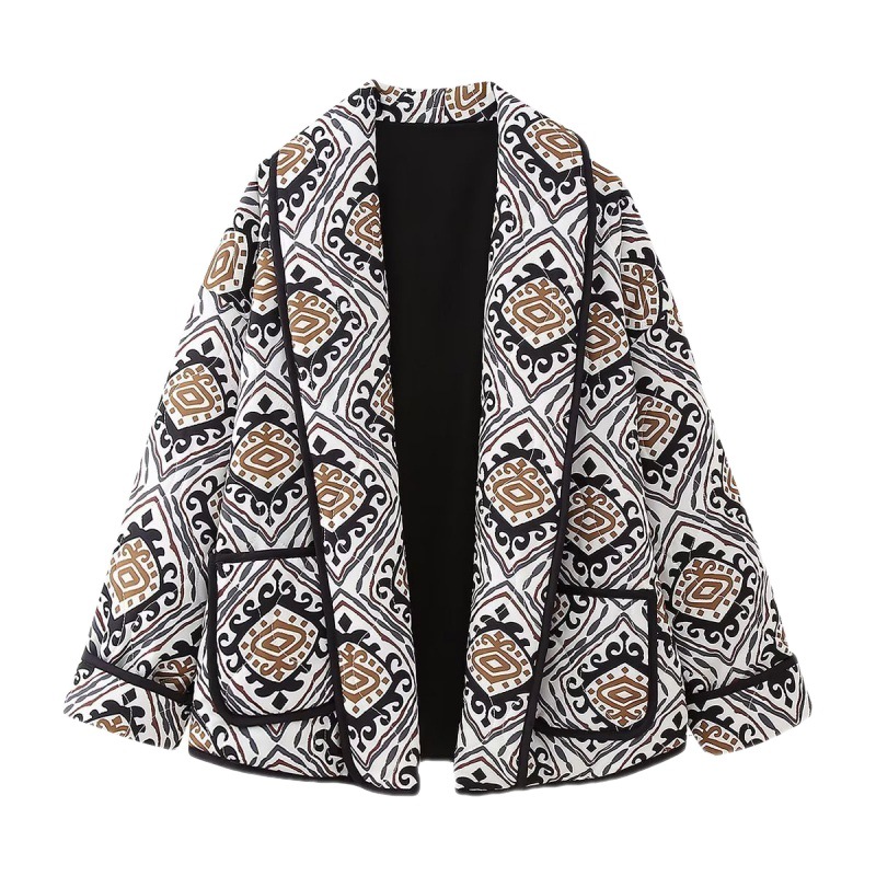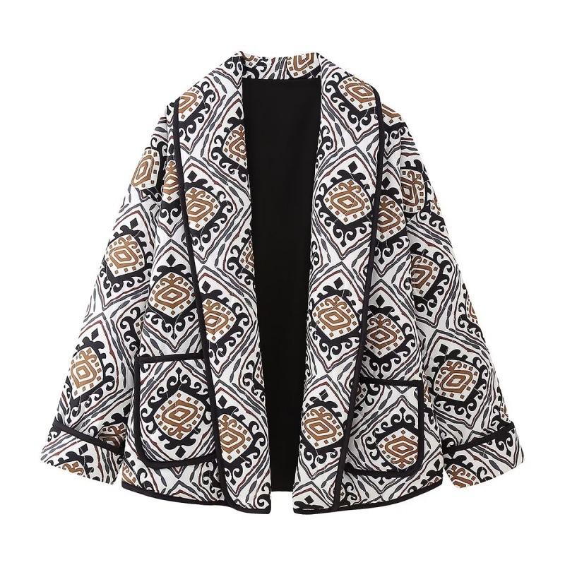 | nameOriginal | ZA cross-border wholesale 2023 autumn European and American style women's printed cotton-padded clothes without buckle casual cotton-padded clothes |