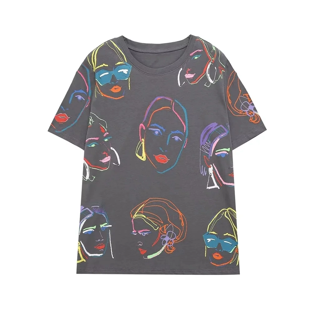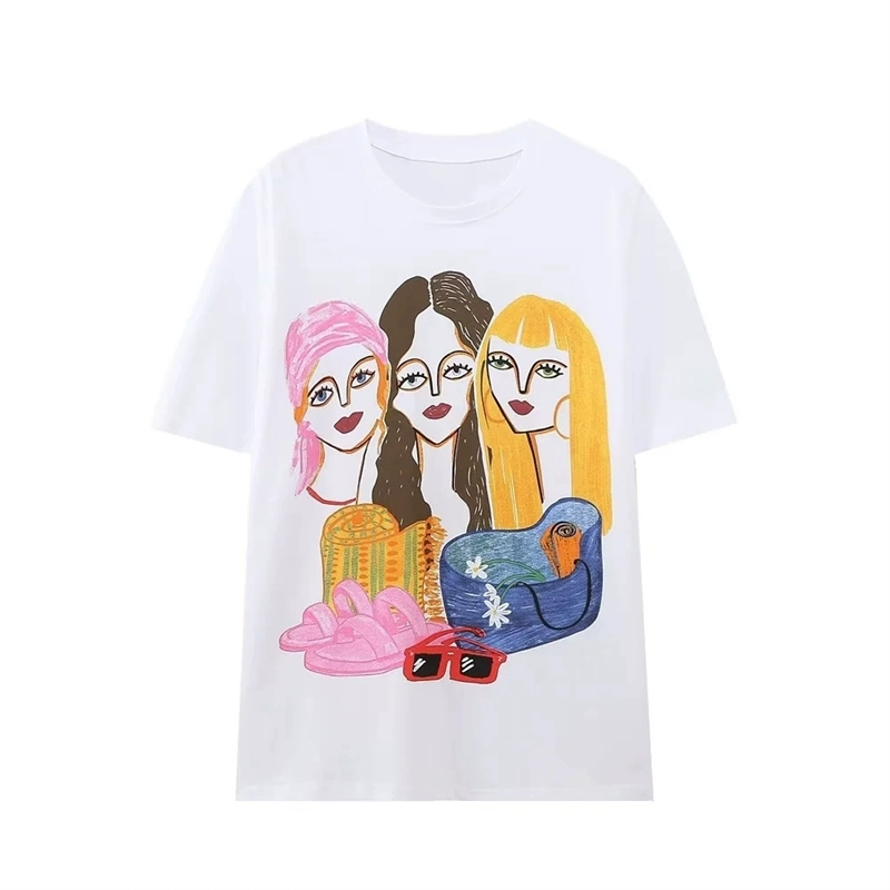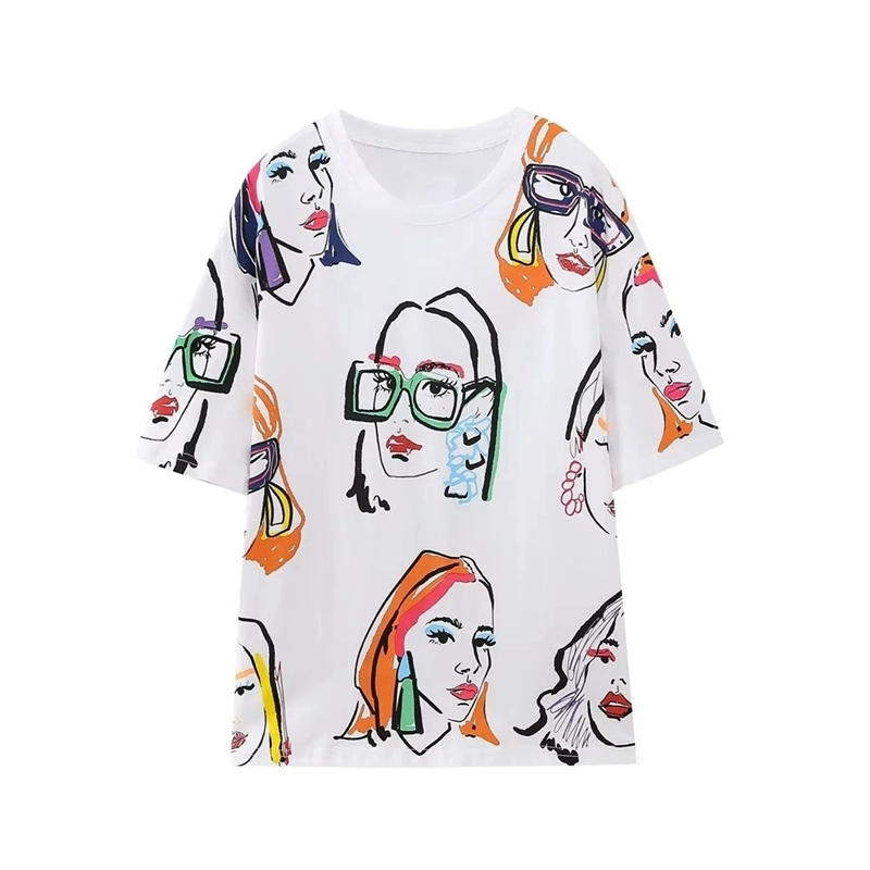| nameOriginal | ZA high-end pure cotton short-sleeved T-shirt women's summer new half-sleeved versatile loose face print T-shirt 1131347 |