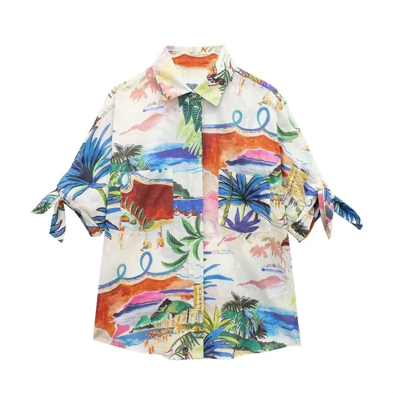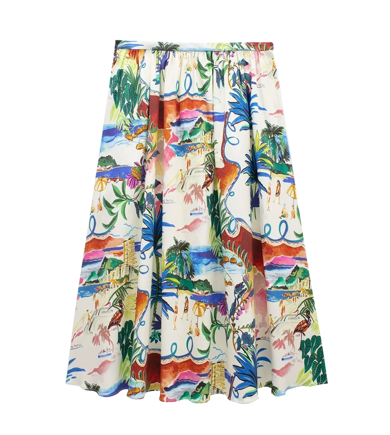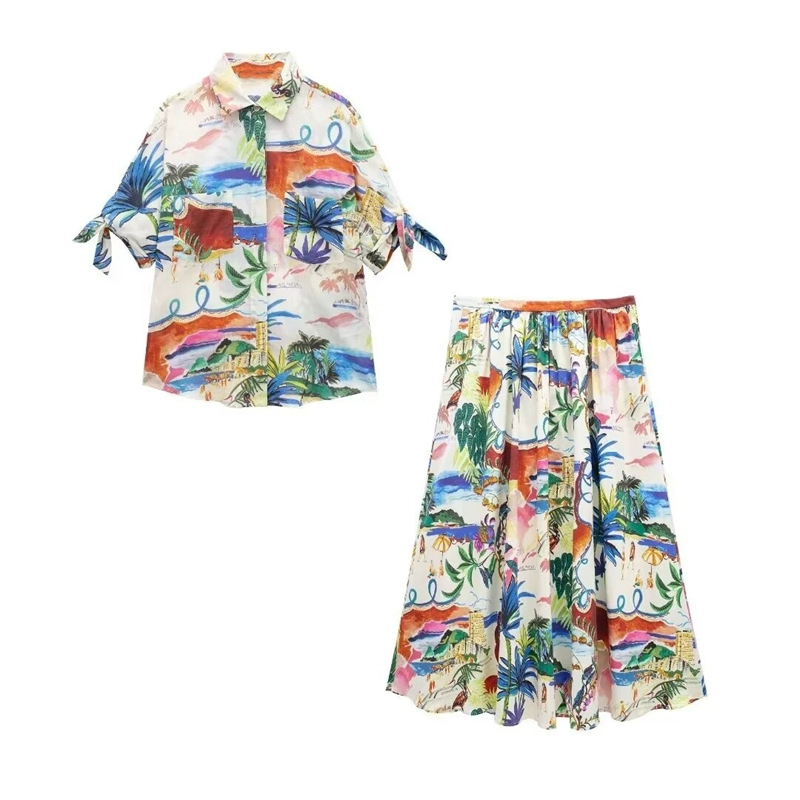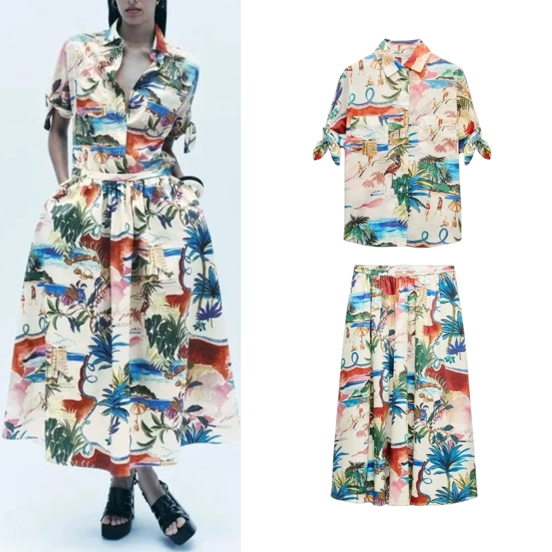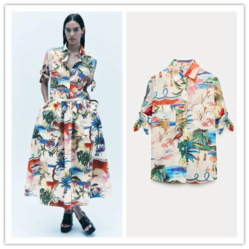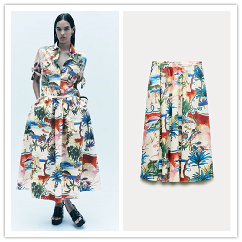ZA new floral print suit for women, lapel short-sleeved shirt 2565157 mid-length skirt 2516158