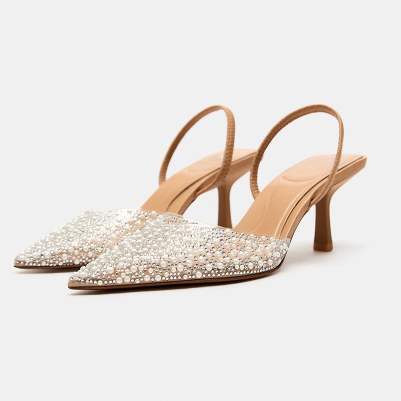 | nameOriginal | ZA Pearl Rhinestone Baotou Sandals Women's 2024 Spring and Summer Straight Back Strap Pointed High Heels Stiletto Mule Sandals |