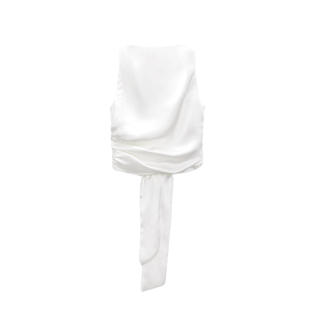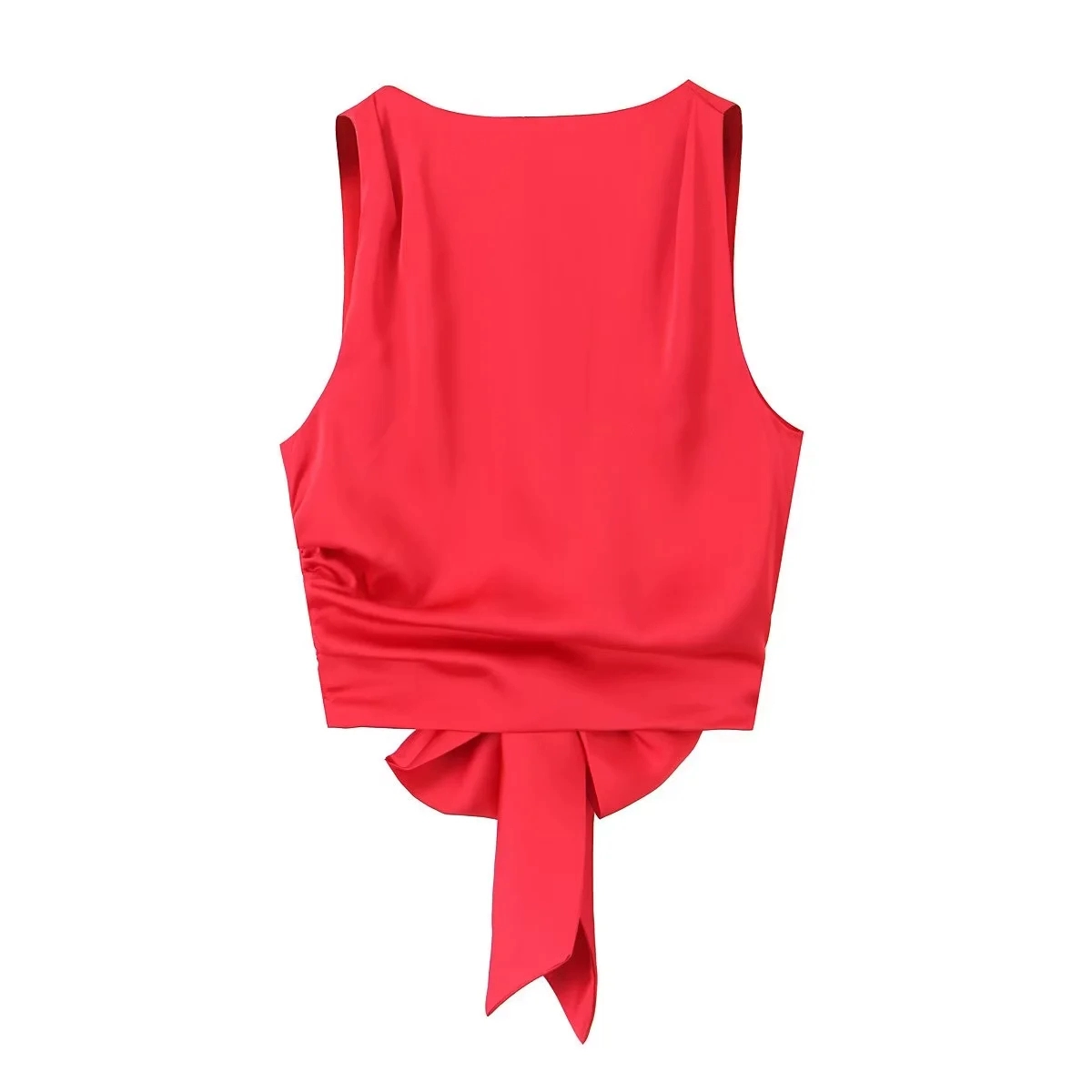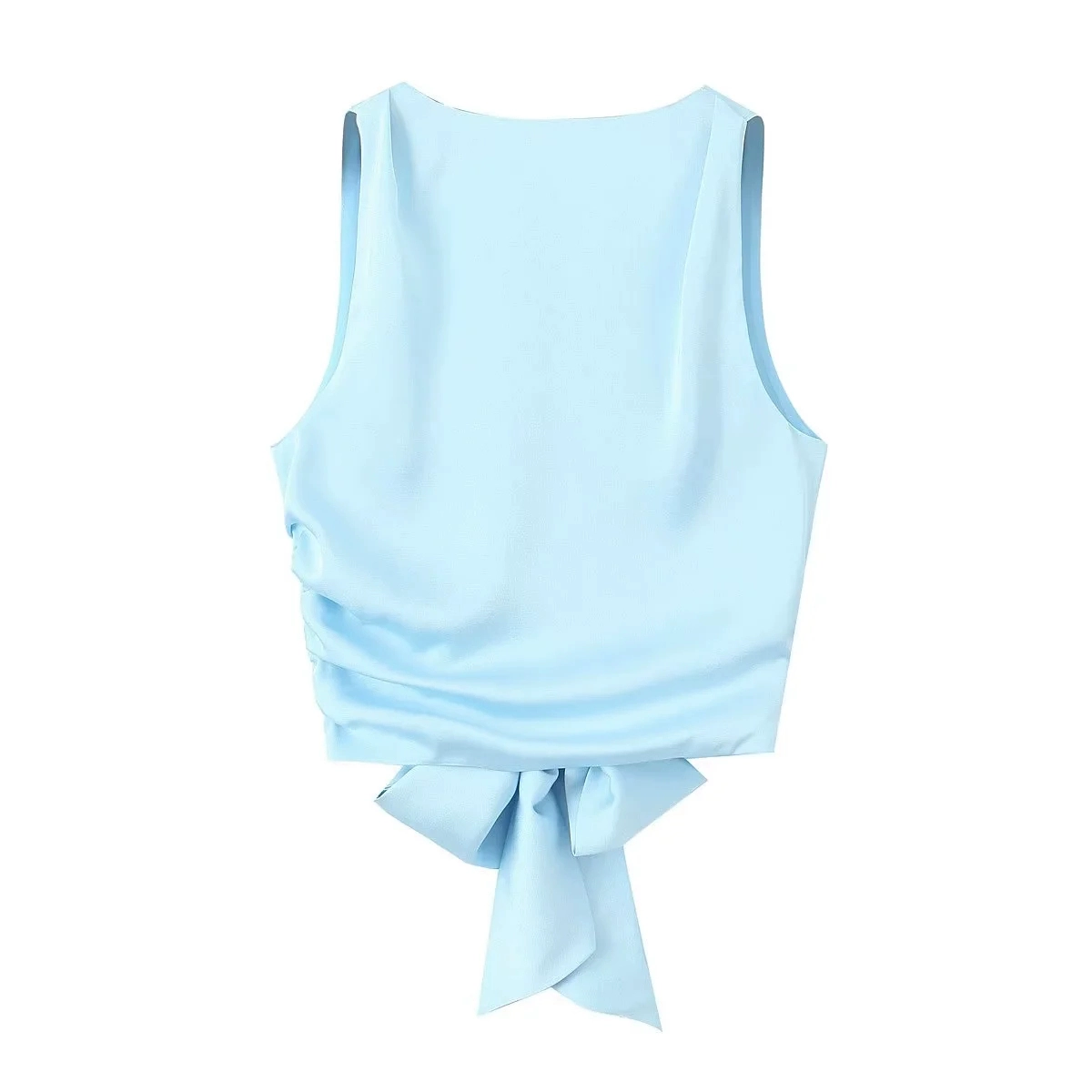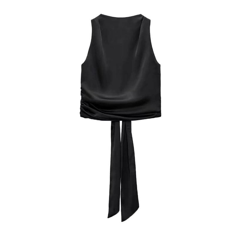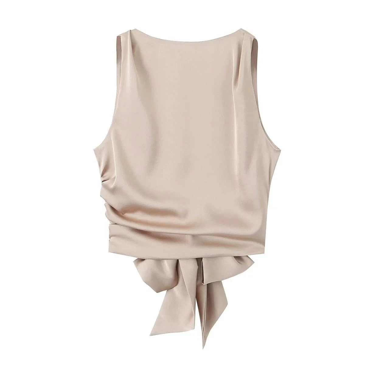 | nameOriginal | ZA summer new round neck sleeveless sexy bow vest backless silk satin texture top 2442650 |
