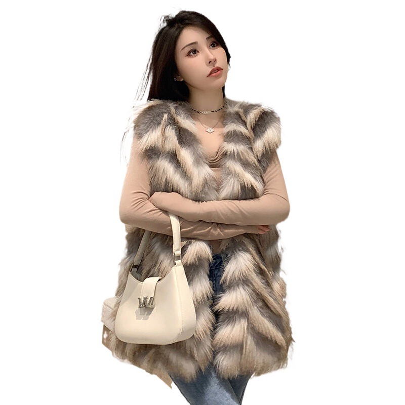 Zebra Pattern Faux Fox Fur Vest Women’s 2024 Winter Cyber Celebrity Retro Loose Fur Vest Jacket