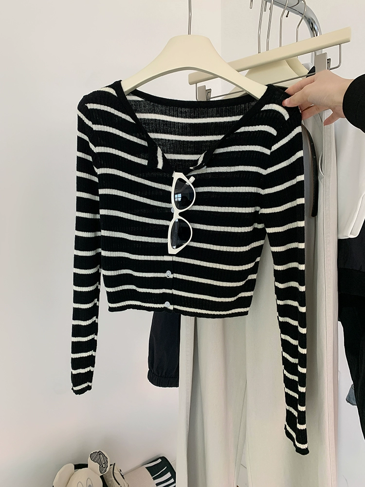| nameOriginal | Zebra Stripe Long Sleeve Knitted T-Shirt Hot Girl Cardigan |