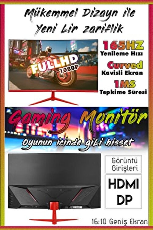 Monitor 23.6″ FULLHD 1080P 165HZ 1MS IPS LED FRAMELESS CURVED PLAYER MONITOR