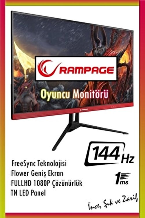 Monitor: 24″ 144HZ 1MS HDMI, DP, VGA FRAMELESS FULLHD 1080P ULTRASLIM LED PLAYER MONITOR