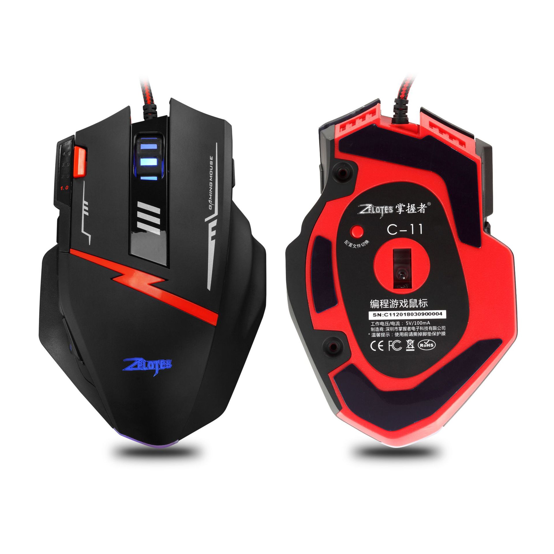 ZELOTES Master Wired Programming Mouse 11-Button Private Model Macro Mouse Press Gun No Rear Seat Feature Mouse