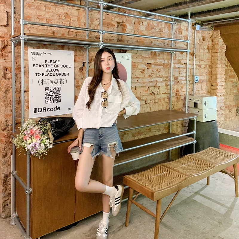 | nameOriginal | Zeng Xiaoxian loose thin vertical striped long-sleeved top |