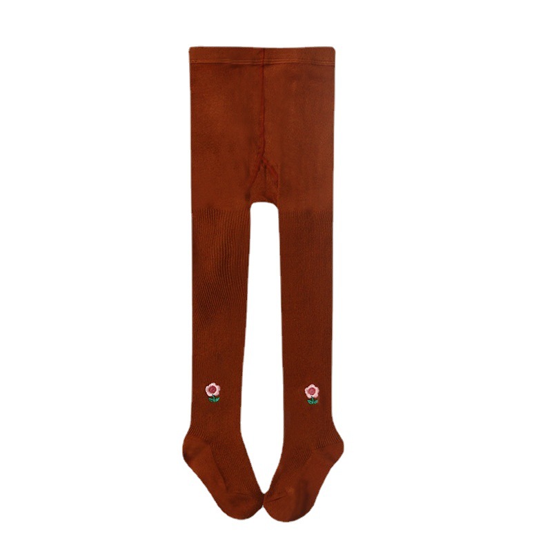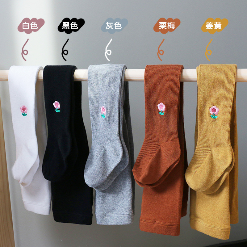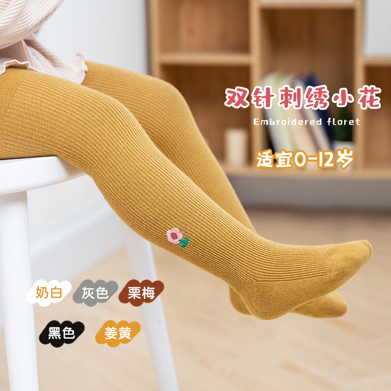 Zero thread head Korean double needle vertical strip candy color baby small middle school big children baby leggings embroidered small flower pantyhose