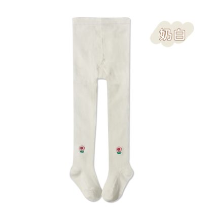Zero thread head Korean double needle vertical strip candy color baby small middle school big children baby leggings embroidered small flower pantyhose