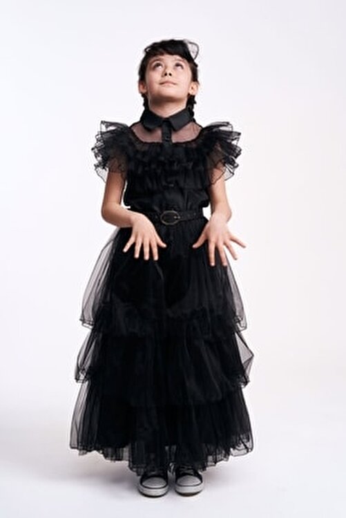 Wednesday prom costume is highly appreciated by girls and teenage girls as a year-end prom dress, wedding dress, and special occasion dress. Wednesday prom costume is made using satin fabric and imagination tulle. The body problem is minimized thanks to its adjustment at the waist. If it is desirable to wear it for a long time, you can choose 1 size larger, given the growth rate of children. Front button. The belt is included in the costume. Available in sizes from 5-6 years old to adult size Mediuma. Please check the size chart and place an order. Please use the product question section for your questions and suggestions. Your questions are answered as soon as possible and physical support is provided. Thanks for choosing us.