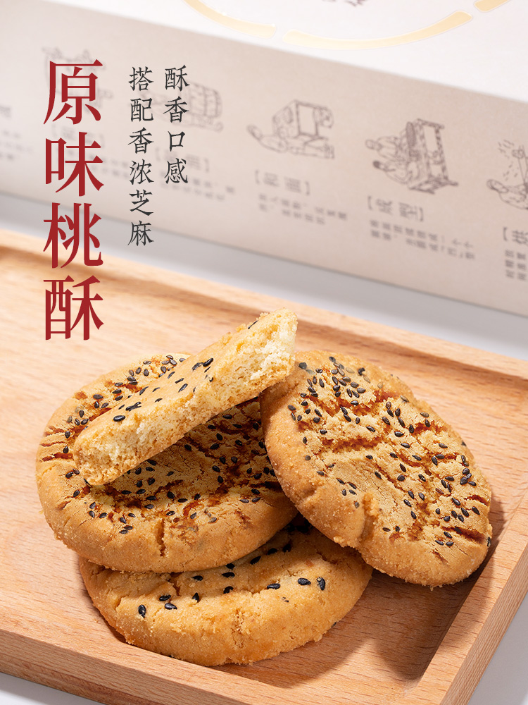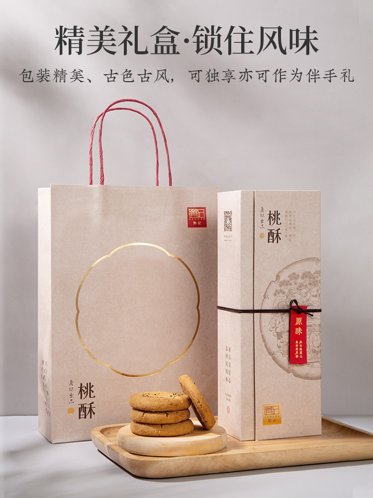 | nameOriginal | Zhan Ji peach cake new Chinese pastry breakfast leisure snack walnut crisp biscuit gift box with hand gift dessert health |