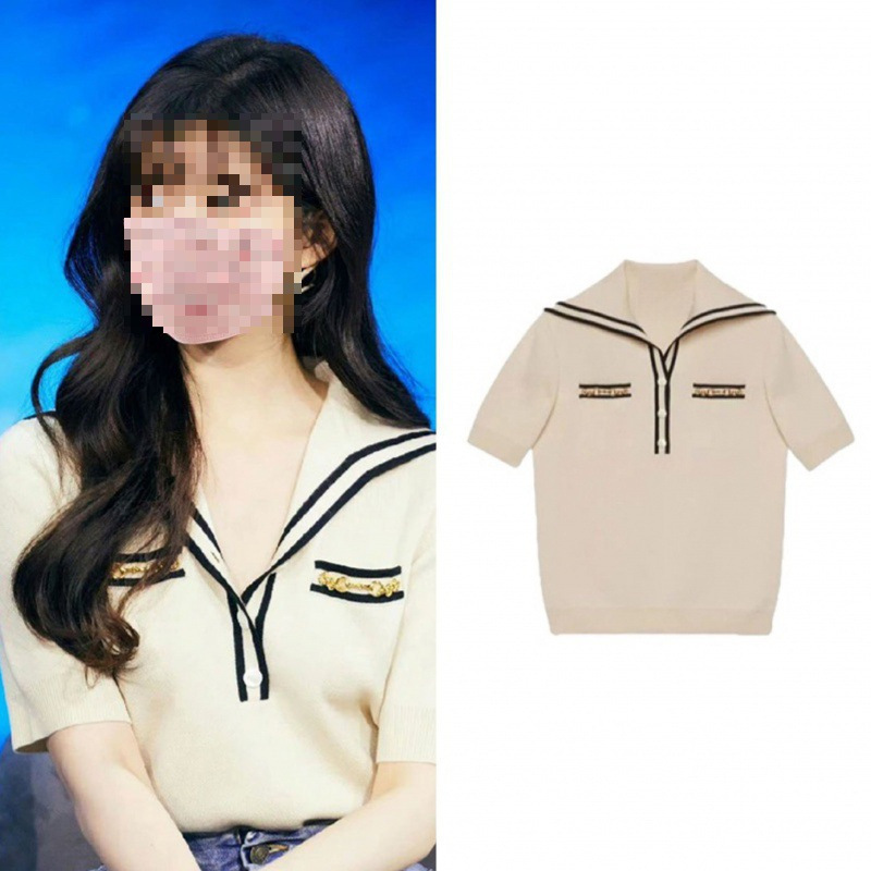 | nameOriginal | Zhao Lusi same style light khaki navy collar T-shirt 2023 Summer new half open collar short sleeve pullover top |