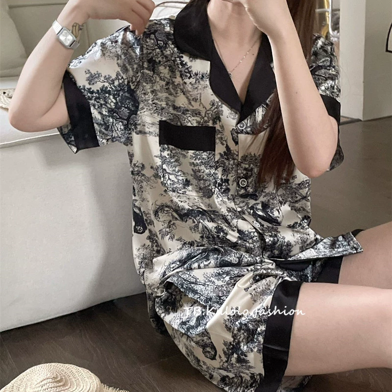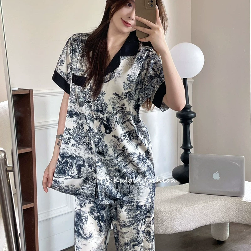 Zhao Lusi Same Alphabet Silk Home Furnishing Pajamas