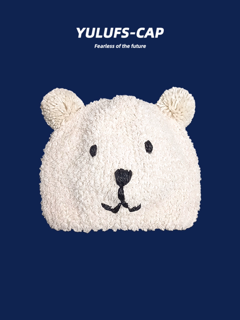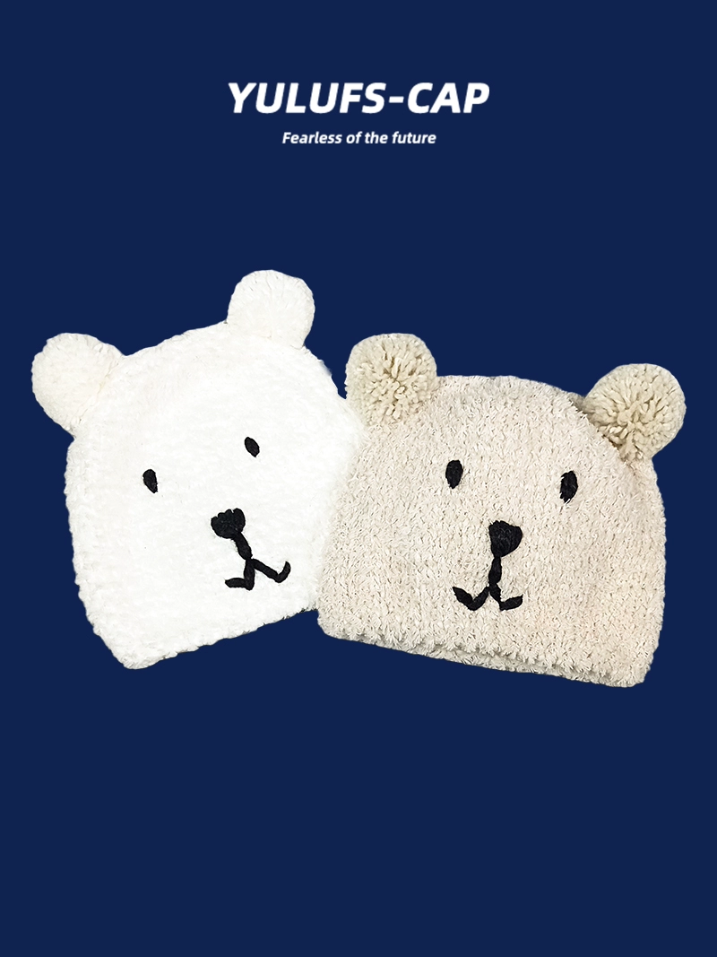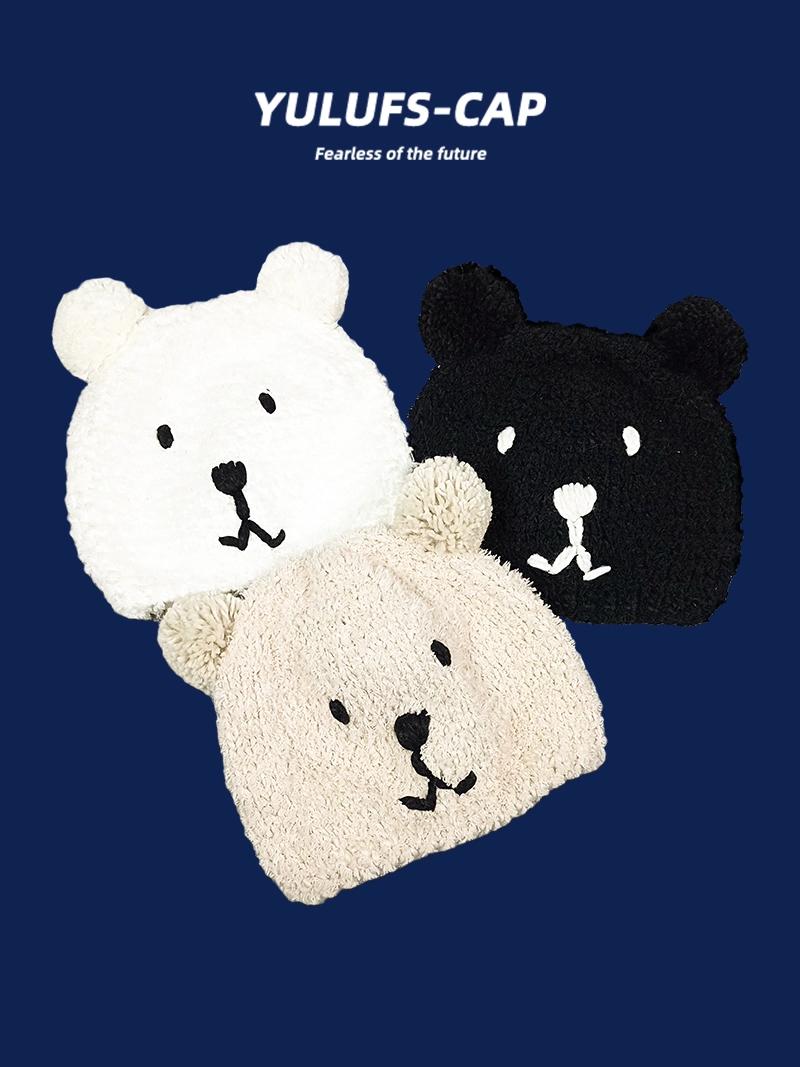 Zhao Lusi's same style bear thick line lamb velvet woolen hat women's warm ear protection knitted hat winter ins cute
